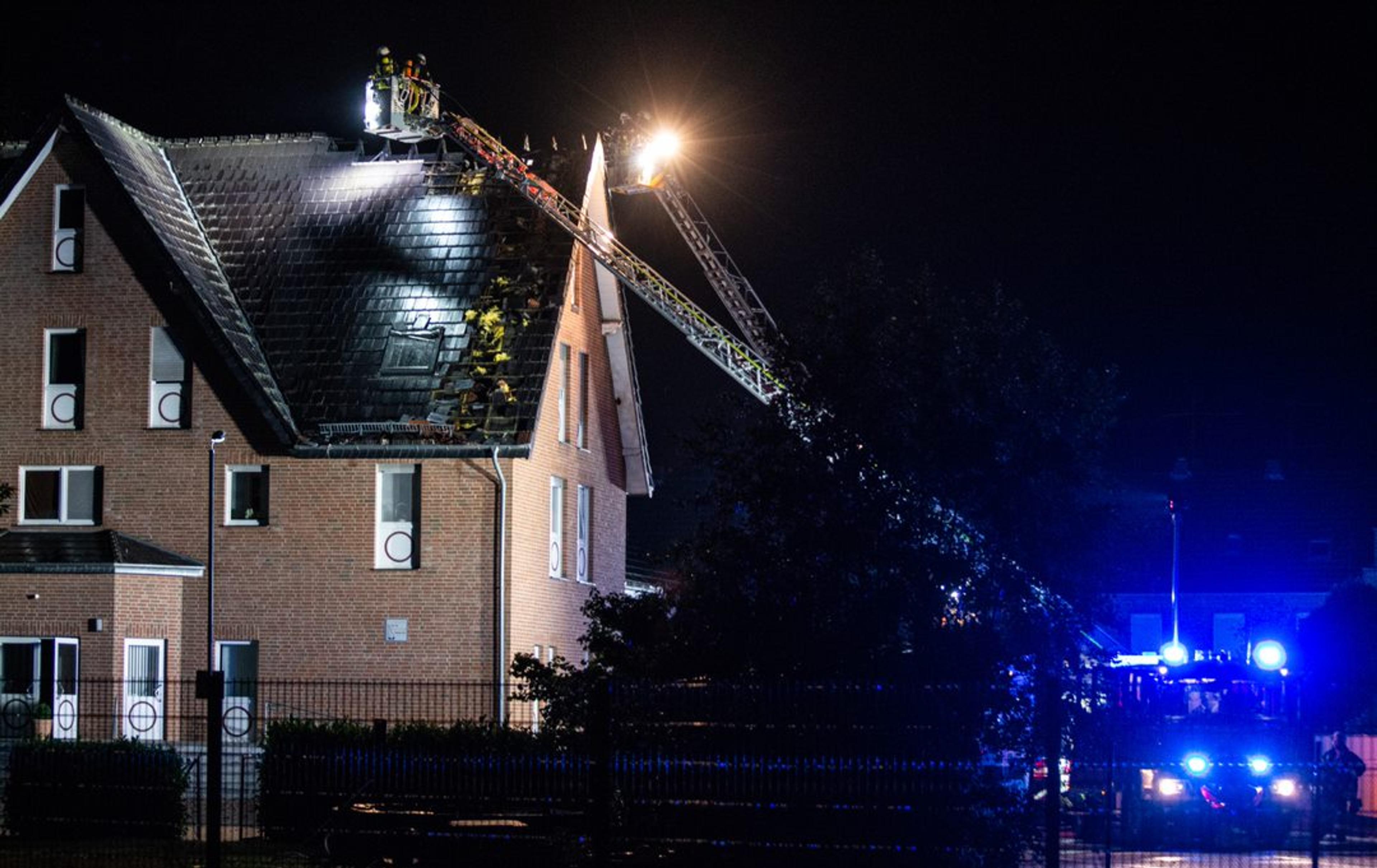Bei den Löscharbeiten unterstützten wir die Freiwillige Feuerwehr der Stadt Kalkar mit der Drehleiter.
