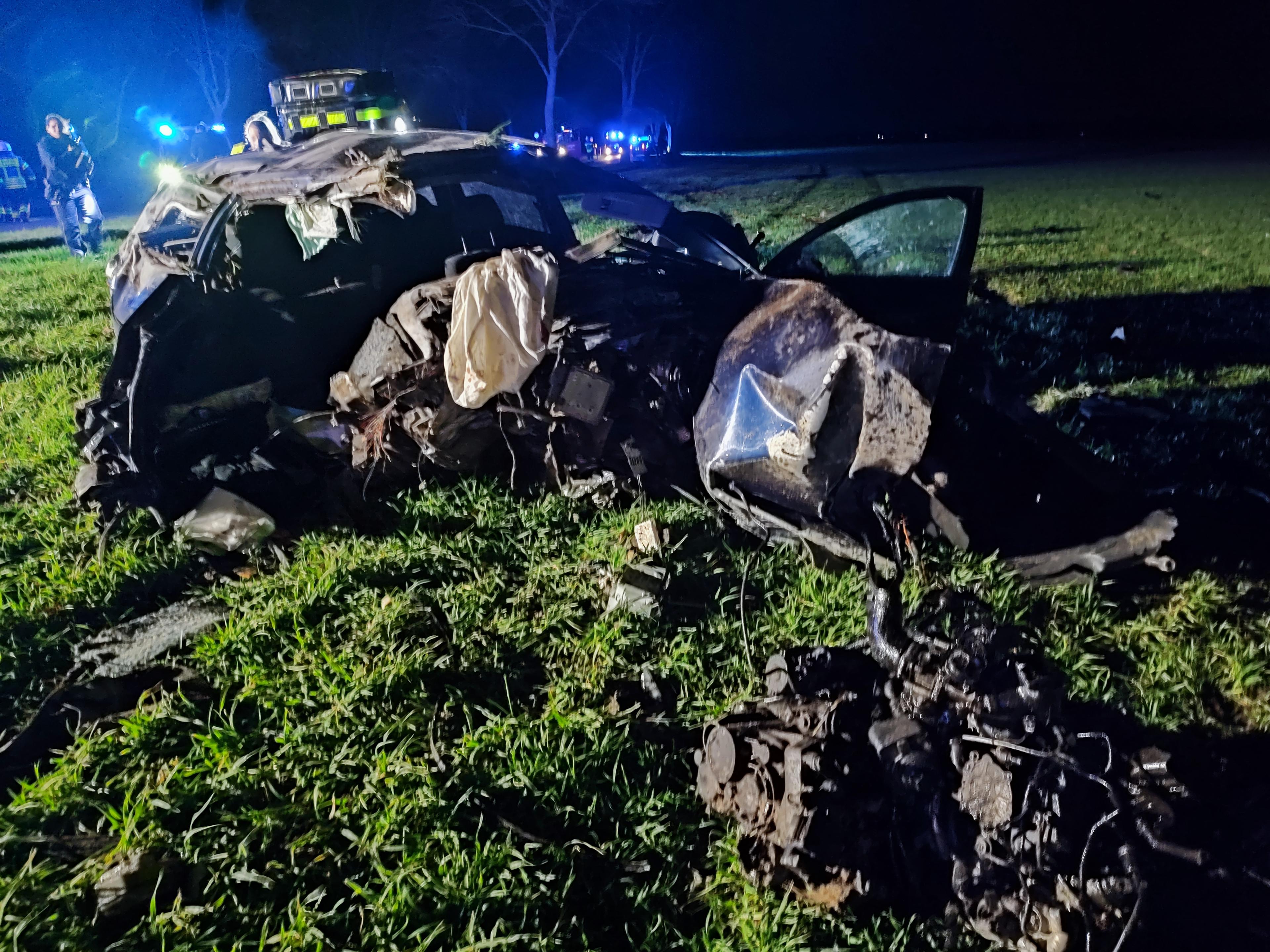 Aus nicht bekannter Ursache war der 22jährige mit seinem VW Passat von der Fahrbahn abgekommen und zunächst gegen einen Straßenbaum geprallt. Durch die Wucht wurde dabei die Beifahrerseite aus dem Fahrzeug gerissen. Das Fahrzeug kam dann rund 100 Meter in einem Feld zum stehen, wobei auch der Motorblock und weitere große Teile aus dem Fahrzeug gerissen wurden.