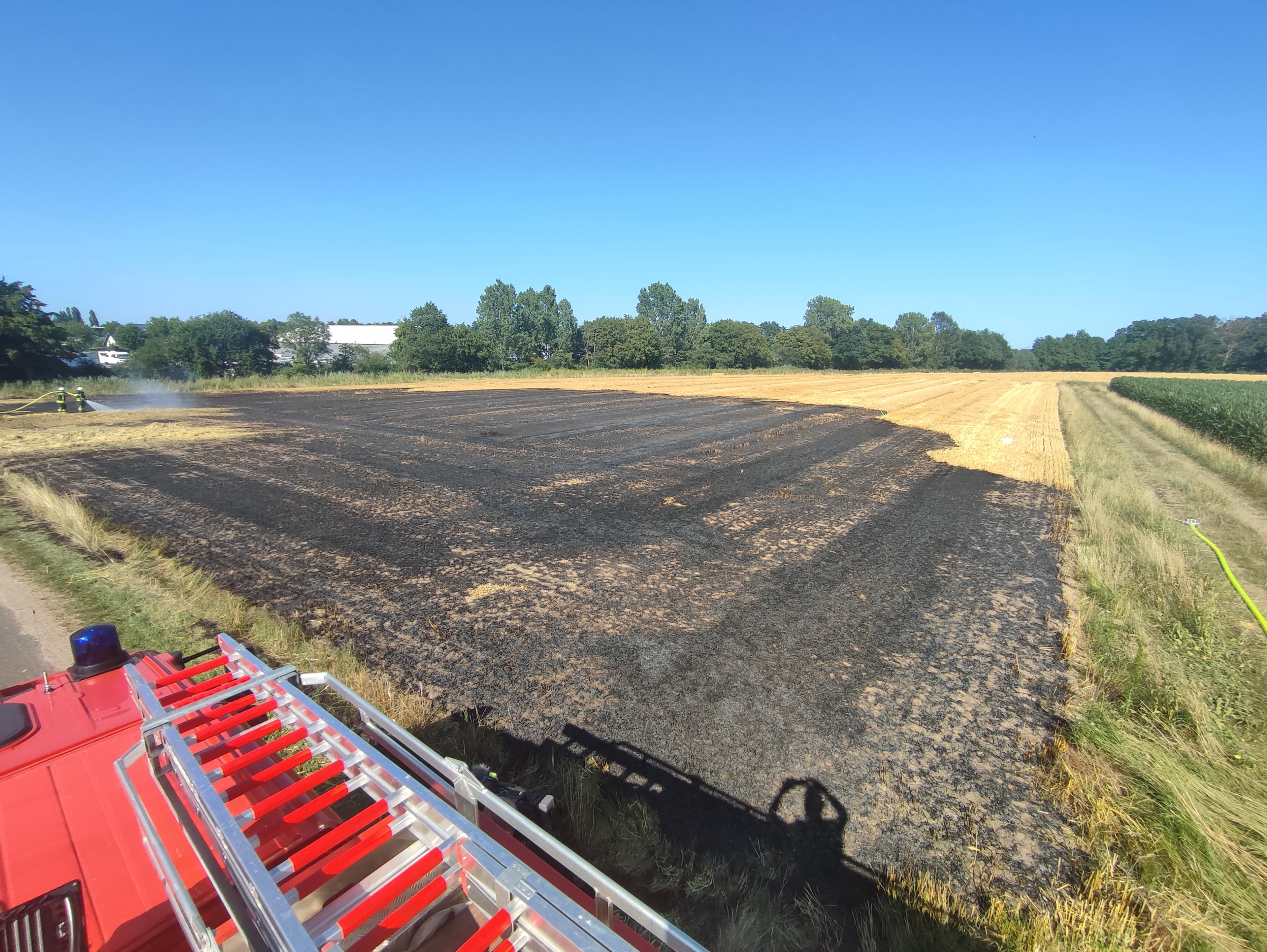 Vor Ort war vermutlich durch einen technischen Defekt an einer Großpackenpresse das Feld und Strohballen in Brand geraten. Das Feuer dehnte sich auf rund 2000 Quadratmeter aus, bevor es unter Kontrolle gebracht werden konnte.
