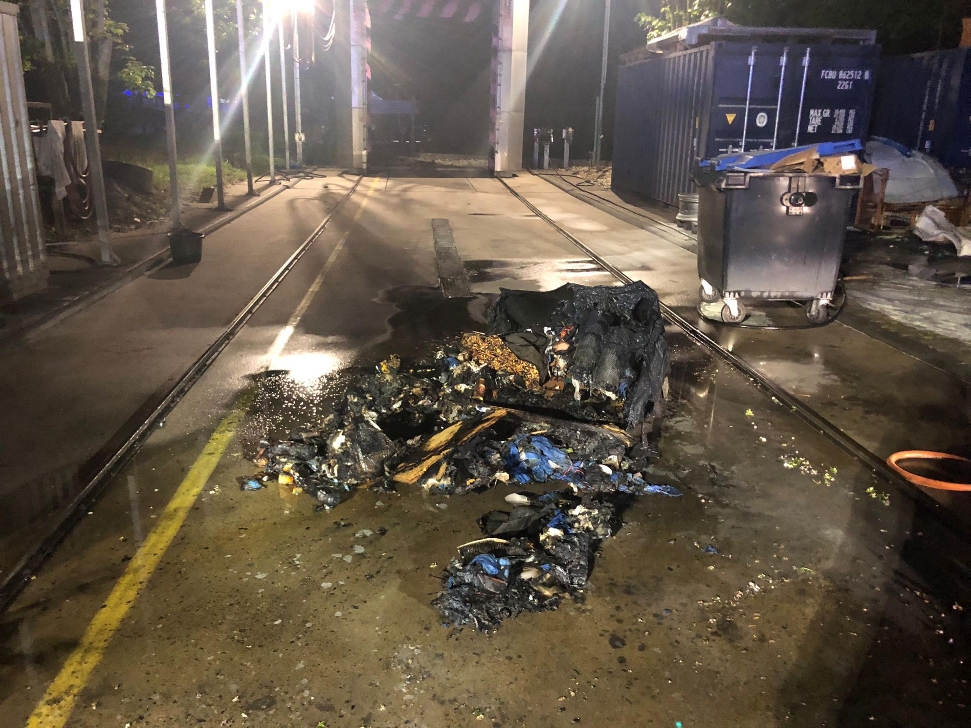Der Müllcontainer wurde mit einem S-Rohr unter Atemschutz abgelöscht.