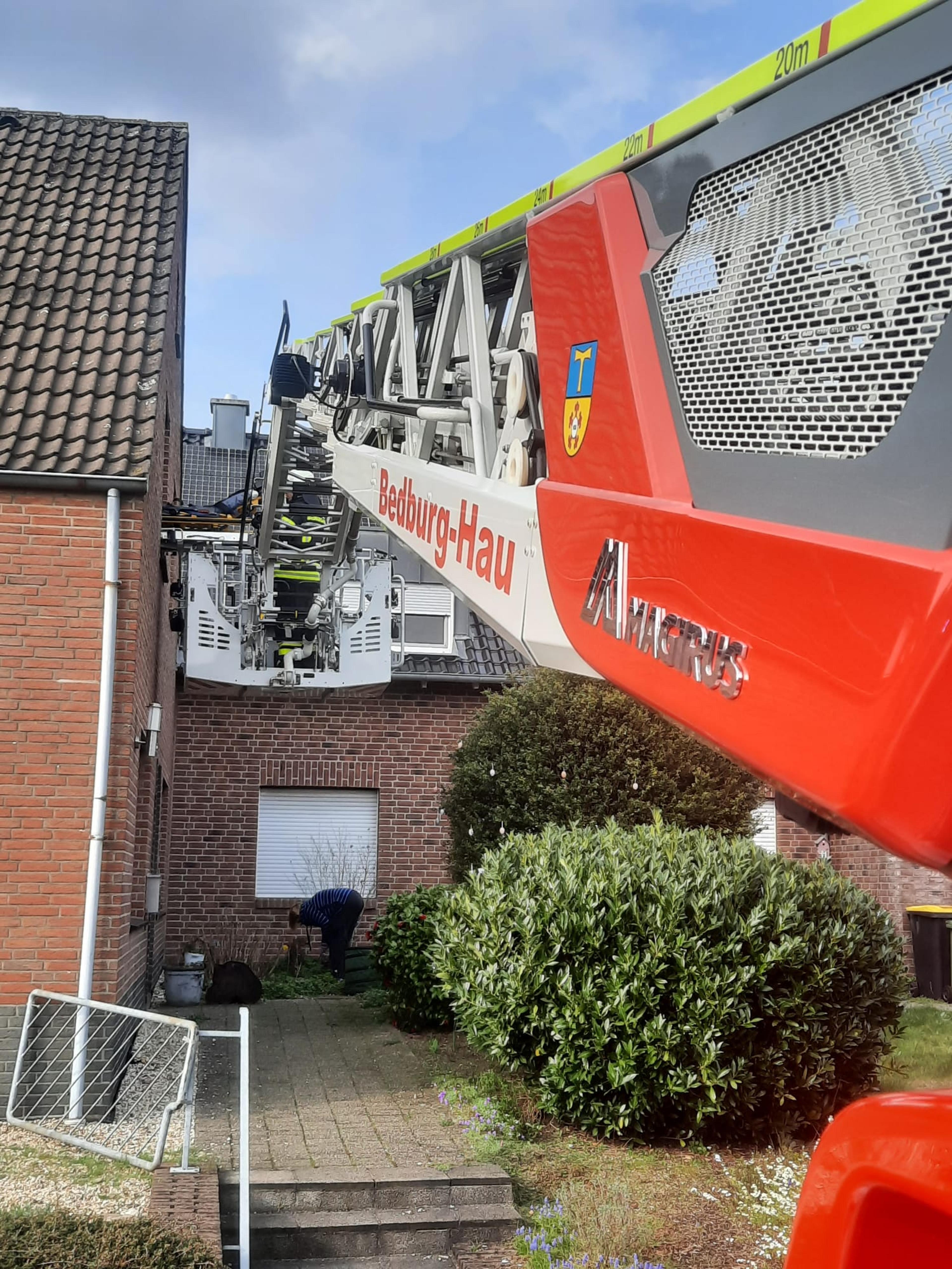 Auf Nachforderung des Rettungsdienstes unterstützten wir die Feuerwehr Kleve mit der Drehleiter bei einem schonenden Patiententransport.