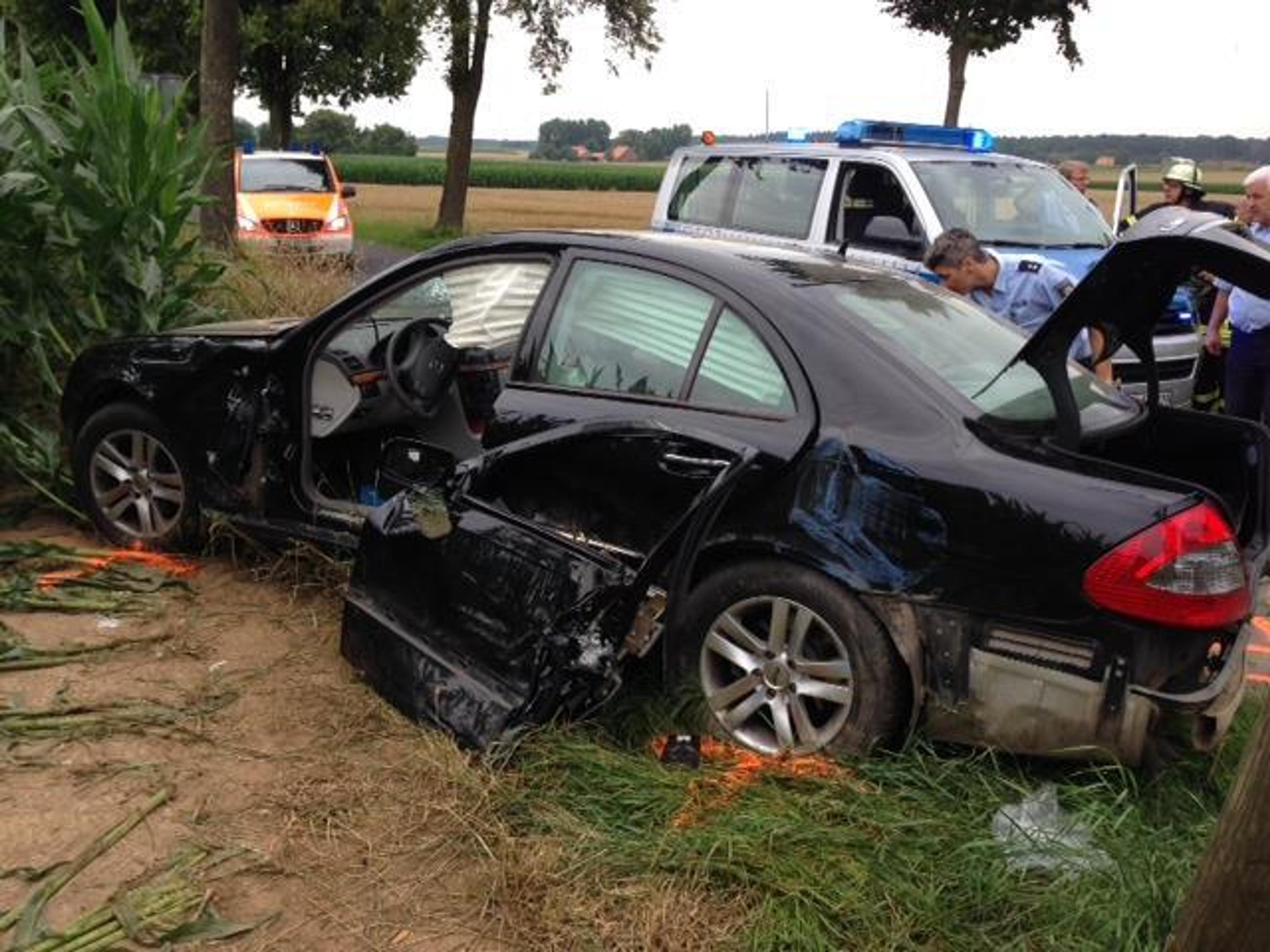 Der Fahrer eines Mercedes wurde in seinem Fahrzeug eingeklemmt und musste von der Feuerwehr befreit werden.
