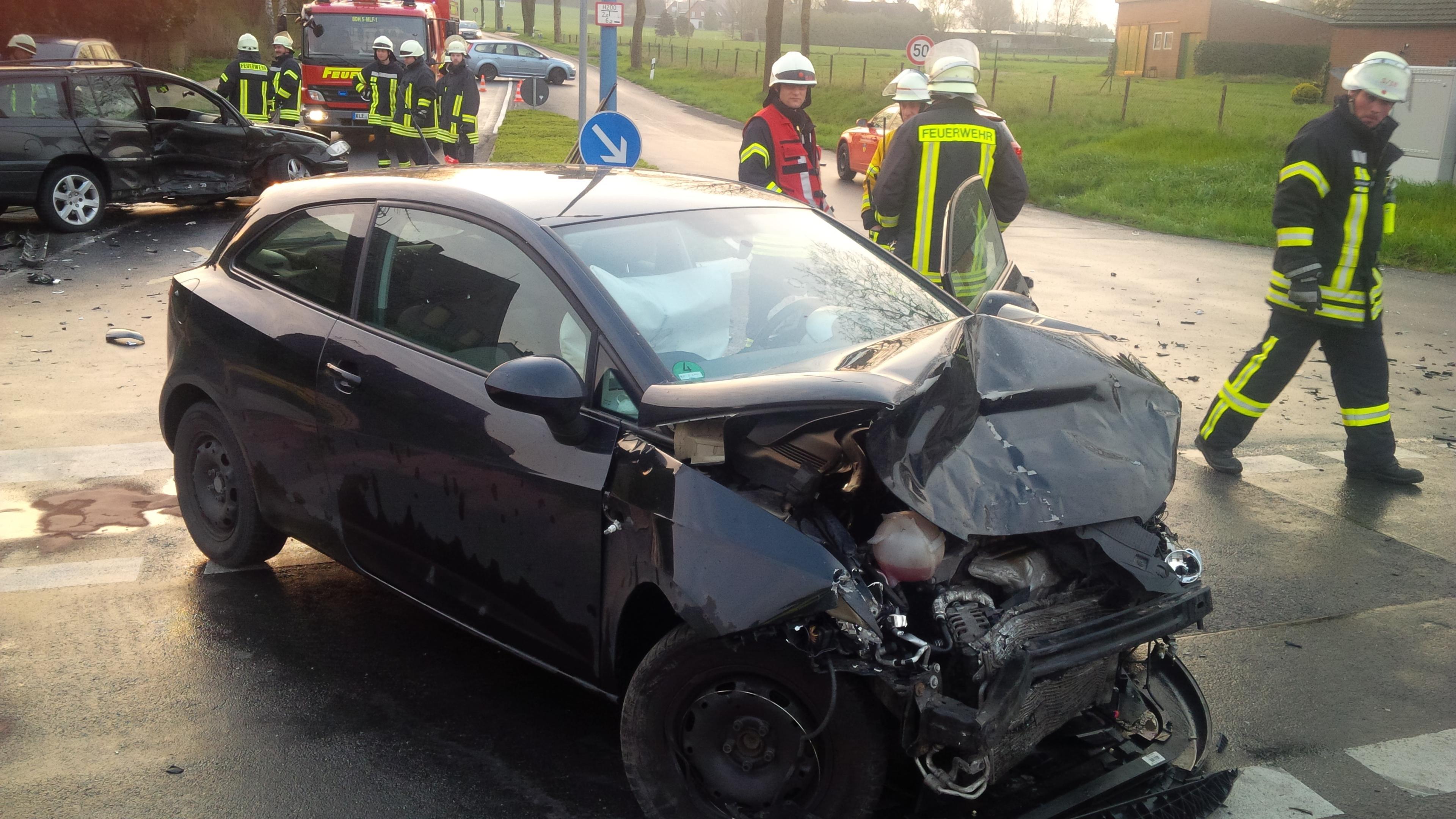 Zu einem schweren Verkehrsunfall kam es heute gegen 06:40 Uhr im Kreuzungsbereich Johann-van-Aken-Ring und Uedemer Straße in Schneppenbaum. Alarmiert wurden der Rettungsdienst sowie die Löschgruppe Schneppenbaum der Freiwilligen Feuerwehr Bedburg-Hau.