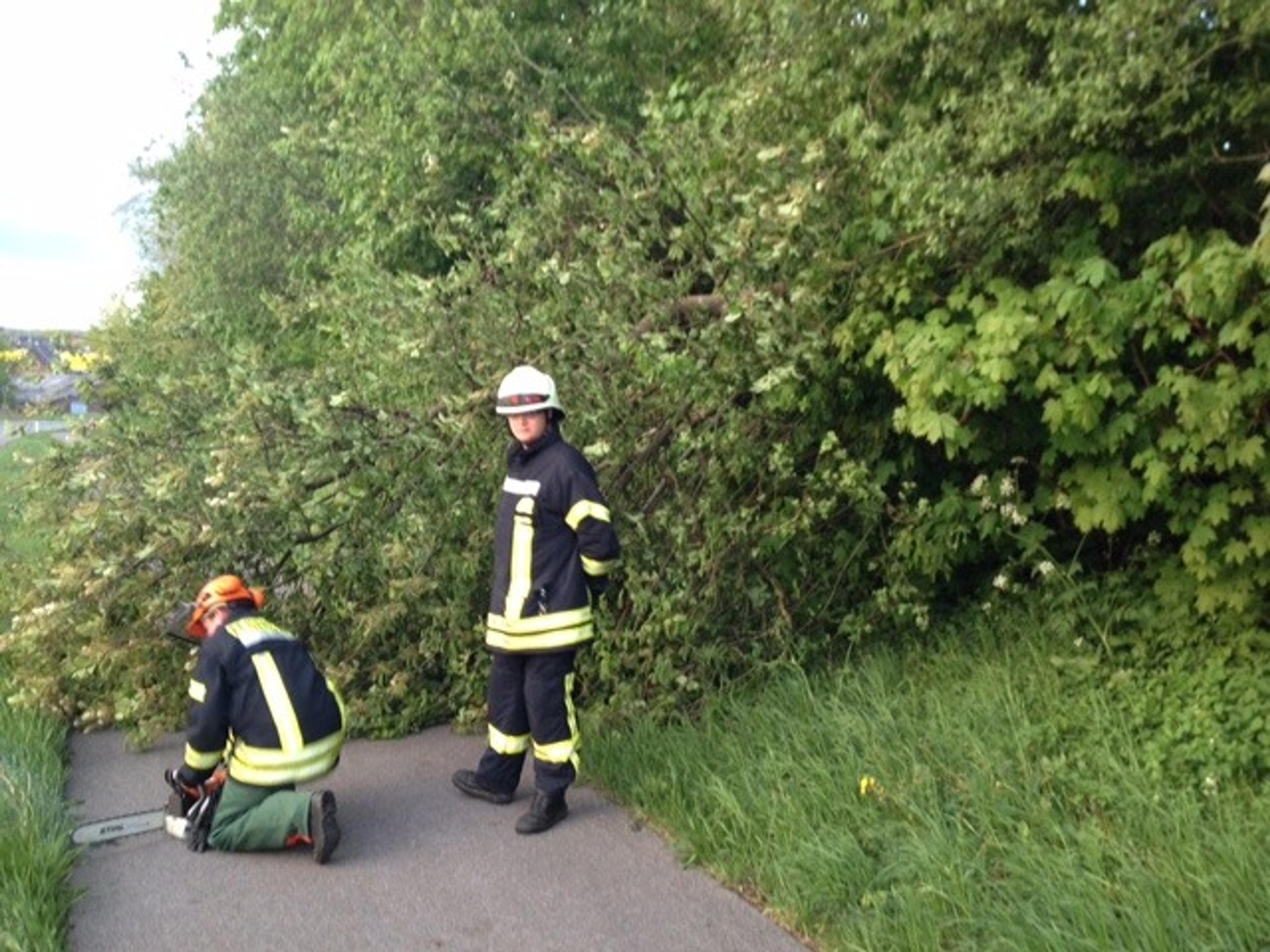 Die Löschgruppe Qualburg befand sich auf der Rückfahrt Abend von der Atemschutzübungsstrecke in Goch, Dabei entdeckten sie einen Baum, der über den Radweg an der Gocher Straße lag und den Weg blockierte. Die Gefahrenstelle wurde mittels Kettensäge beseitigt und klein gesägt.