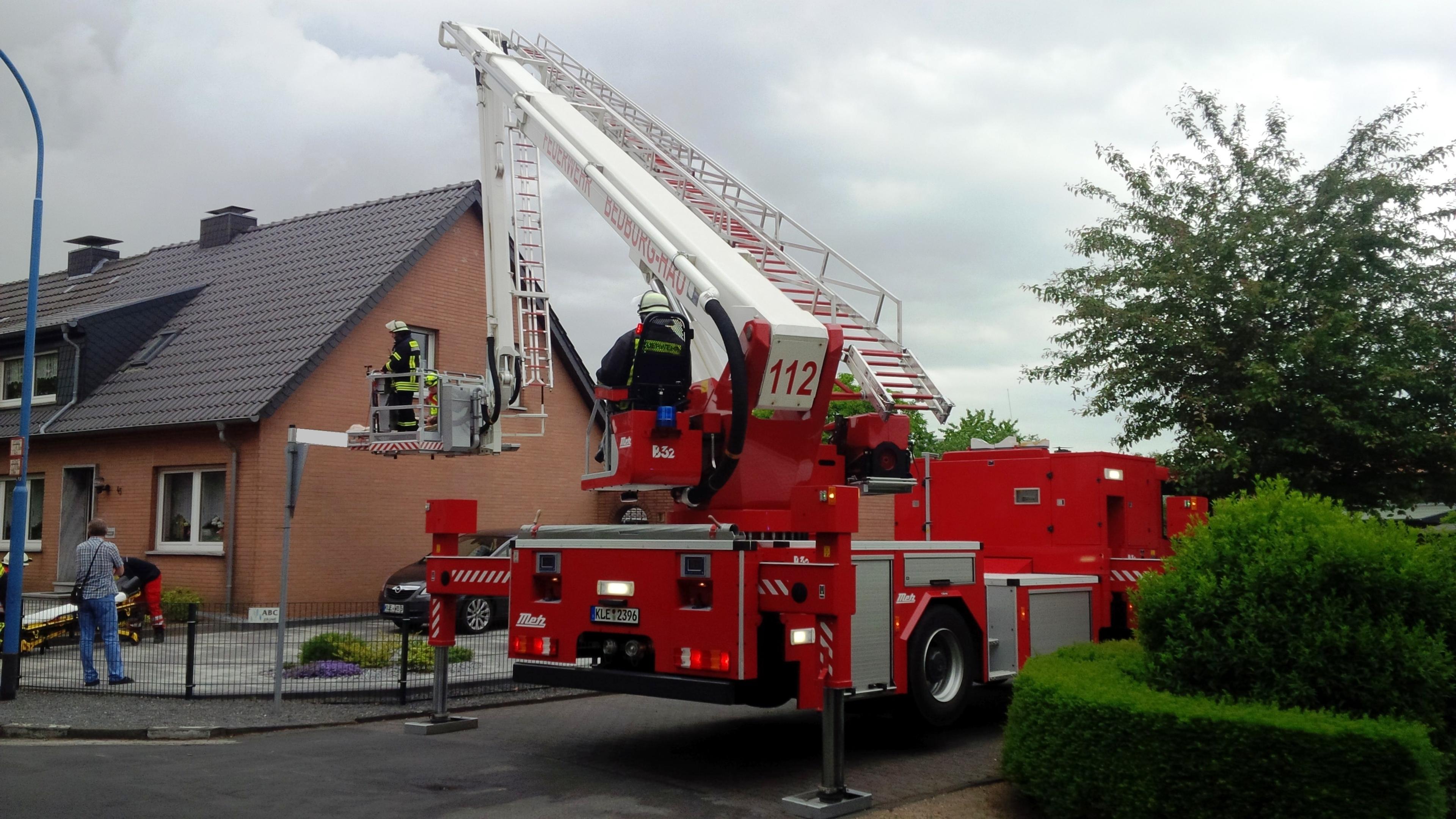 Eine erkrankte Person im Obergeschoss eines Hauses sollte ins Krankenhaus gebracht werden. Da das Treppenhaus zu eng für einen patientenschonenden Transport war, wurde die Feuerwehr um 14:35 Uhr zu Hilfe gerufen.