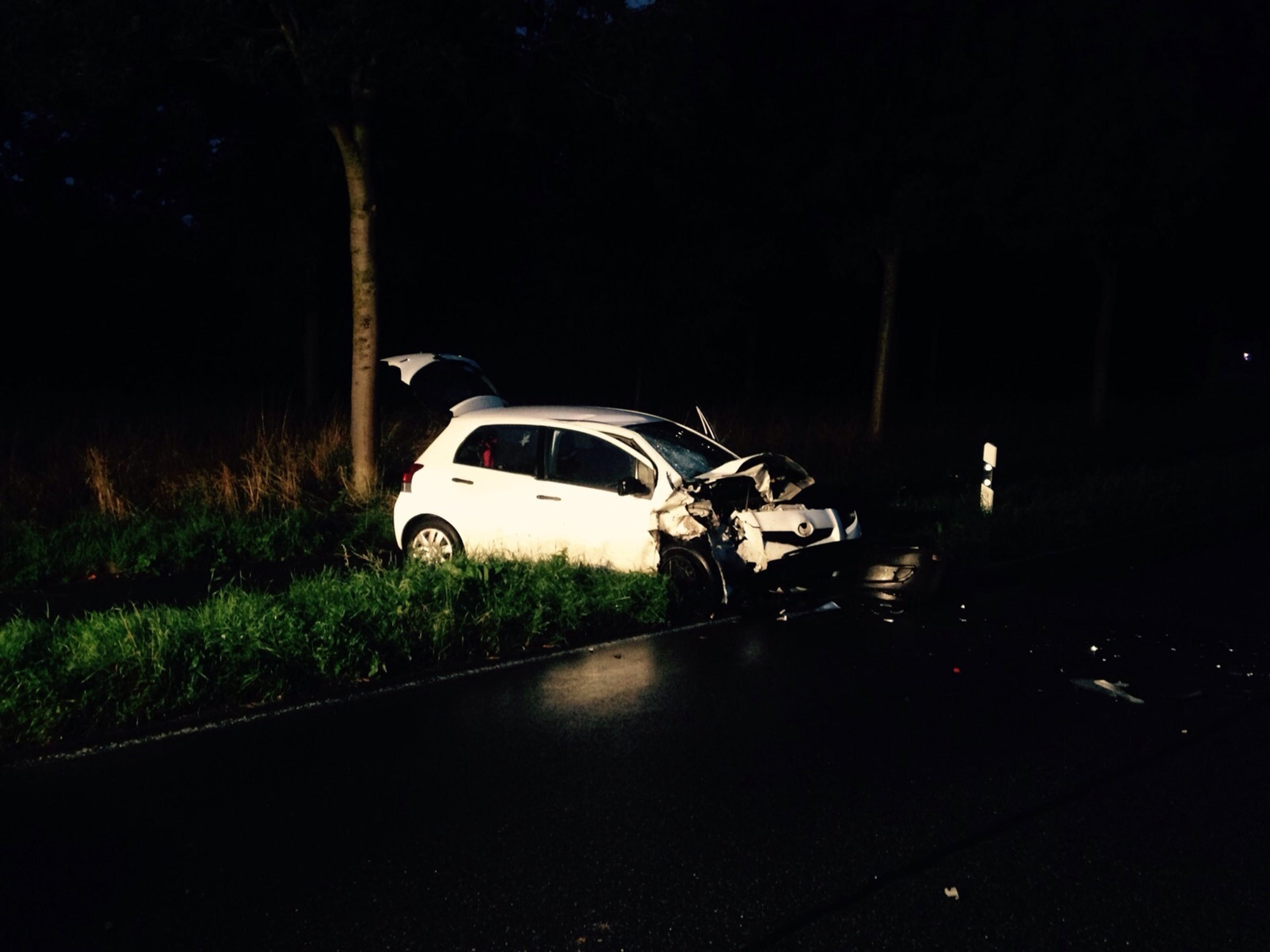 Zum Unfall war es gekommen, nachdem ein 51jähriger Mann aus Kleve mit seinem schwarzen Kia Ceed in Höhe der Klompstraße aus Fahrtrichtung Kleve auf regennasser Straße die Kontrolle über sein Fahrzeug verlor und in einer langgezogenen Rechtskurve auf die Gegenfahrbahn schleuderte. Hier geriet er auf den Grünstreifen, streifte einen Straßenbaum und kollidierte anschließend frontal mit dem entgegenkommenden weißen Toyota Yaris einer 33jährigen Frau aus Bedburg-Hau.