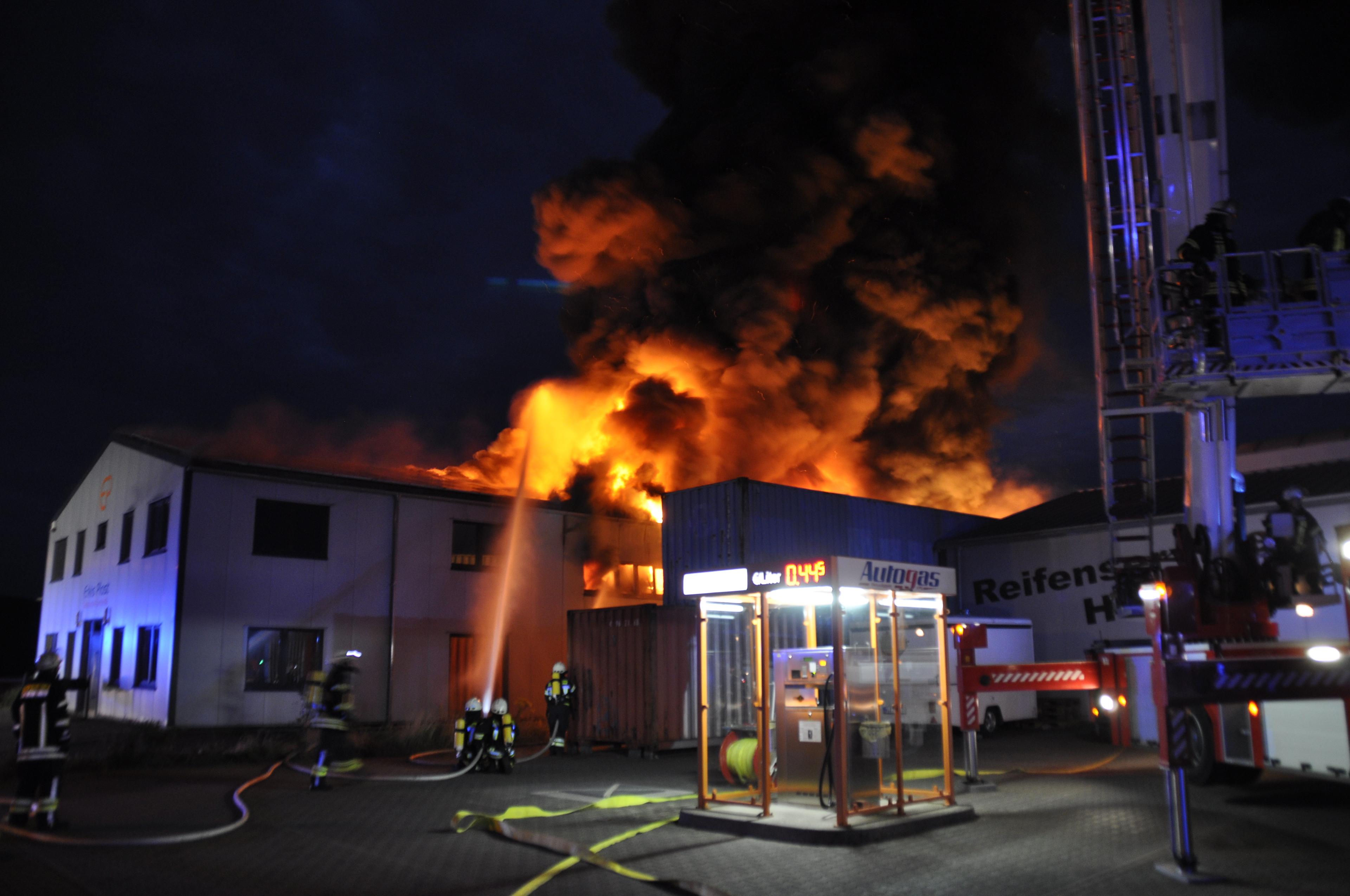 Gegen 01:30 Uhr konnte das Feuer in der 700qm großen Halle unter Kontrolle gebracht werden, so dass erste Einheiten der Feuerwehr aus dem Einsatz entlassen werden konnten.