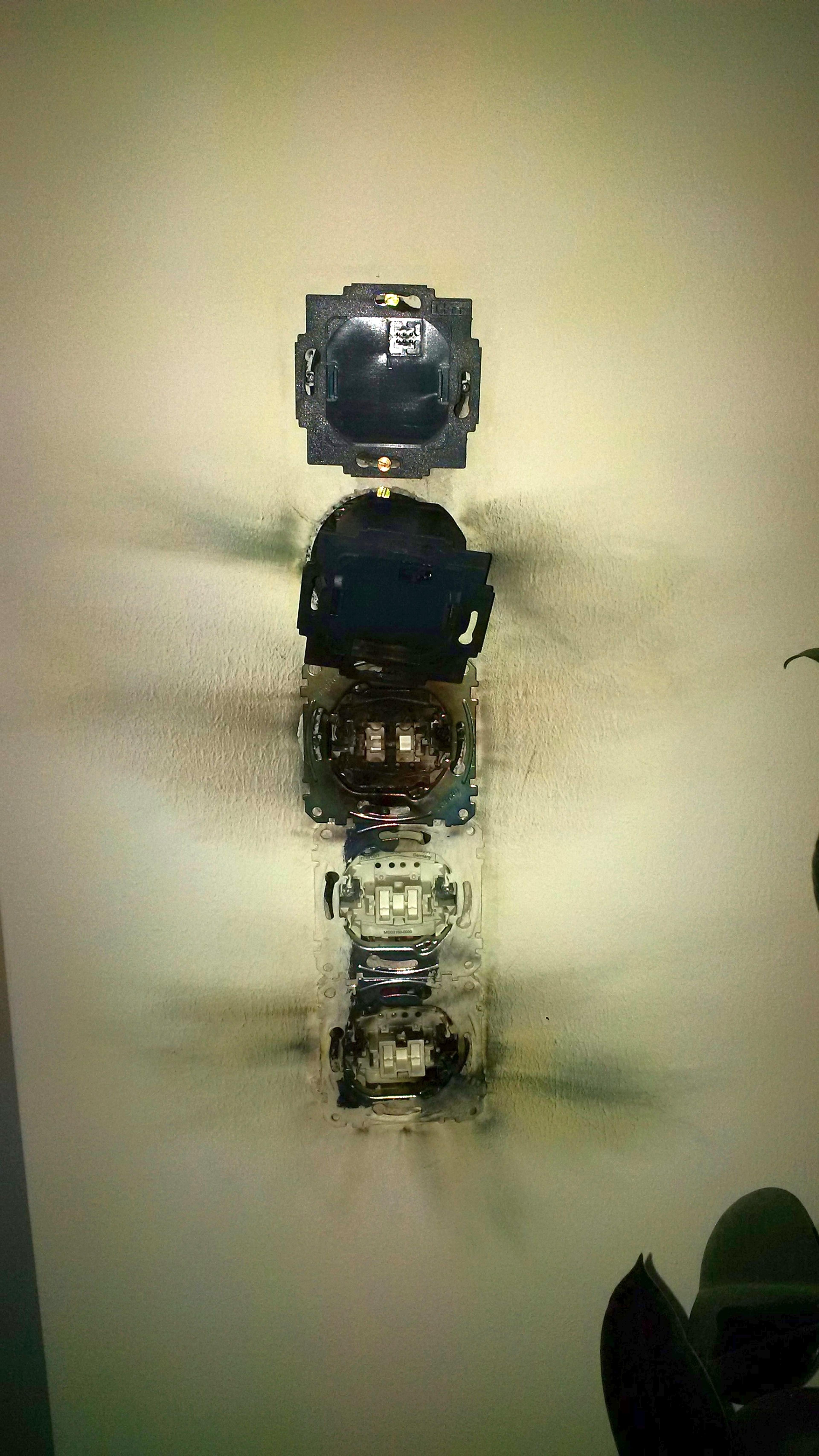 Auch im Haus führte der Blitzeinschlag zu Schäden: Steckdosen und Lichtschalter wurden durch die Überspannung herausgerissen und in den Raum geschleudert. Das gleiche im Hauswirtschaftsraum. Dort wurden Telefonanschlüsse und Router beschädigt. Auch hier Rauch und Funken.