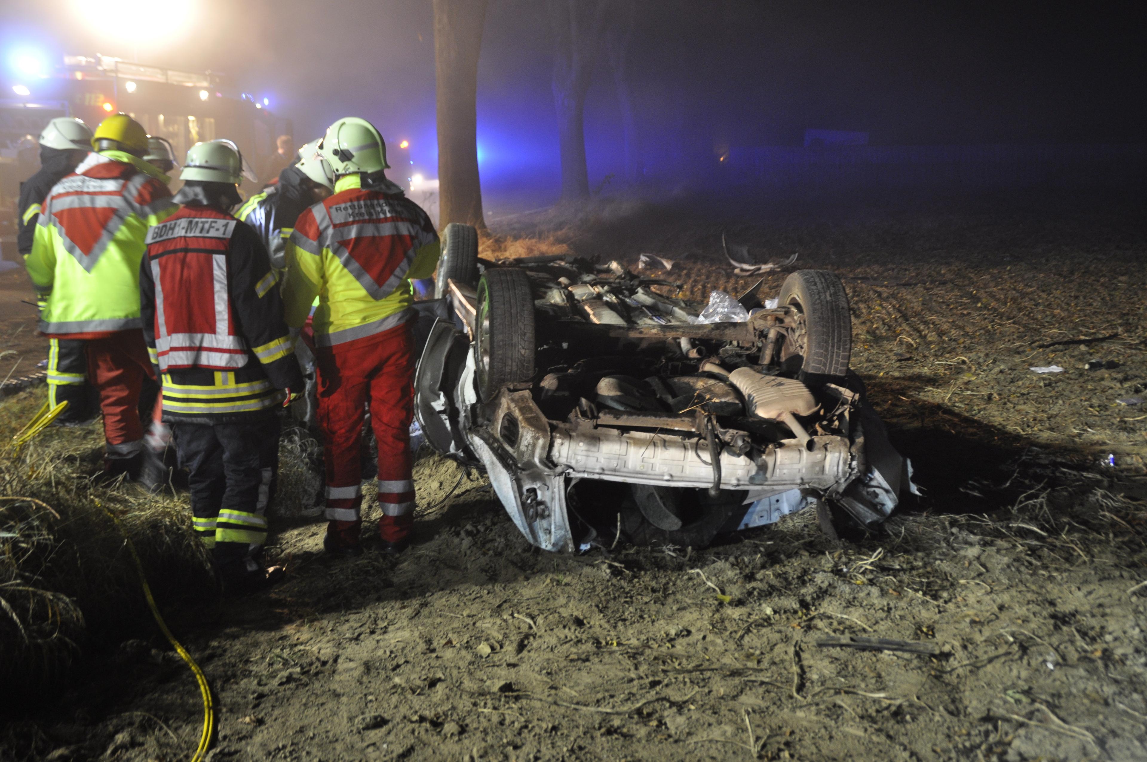 Nach Eintreffen des Rettungsdienstes und der Feuerwehr konnte nur noch der Tod der beiden männlichen Fahrzeuginsassen festgestellt werden. Sie wurden von der Feuerwehr aus dem völlig zerstörten Fahrzeug befreit.