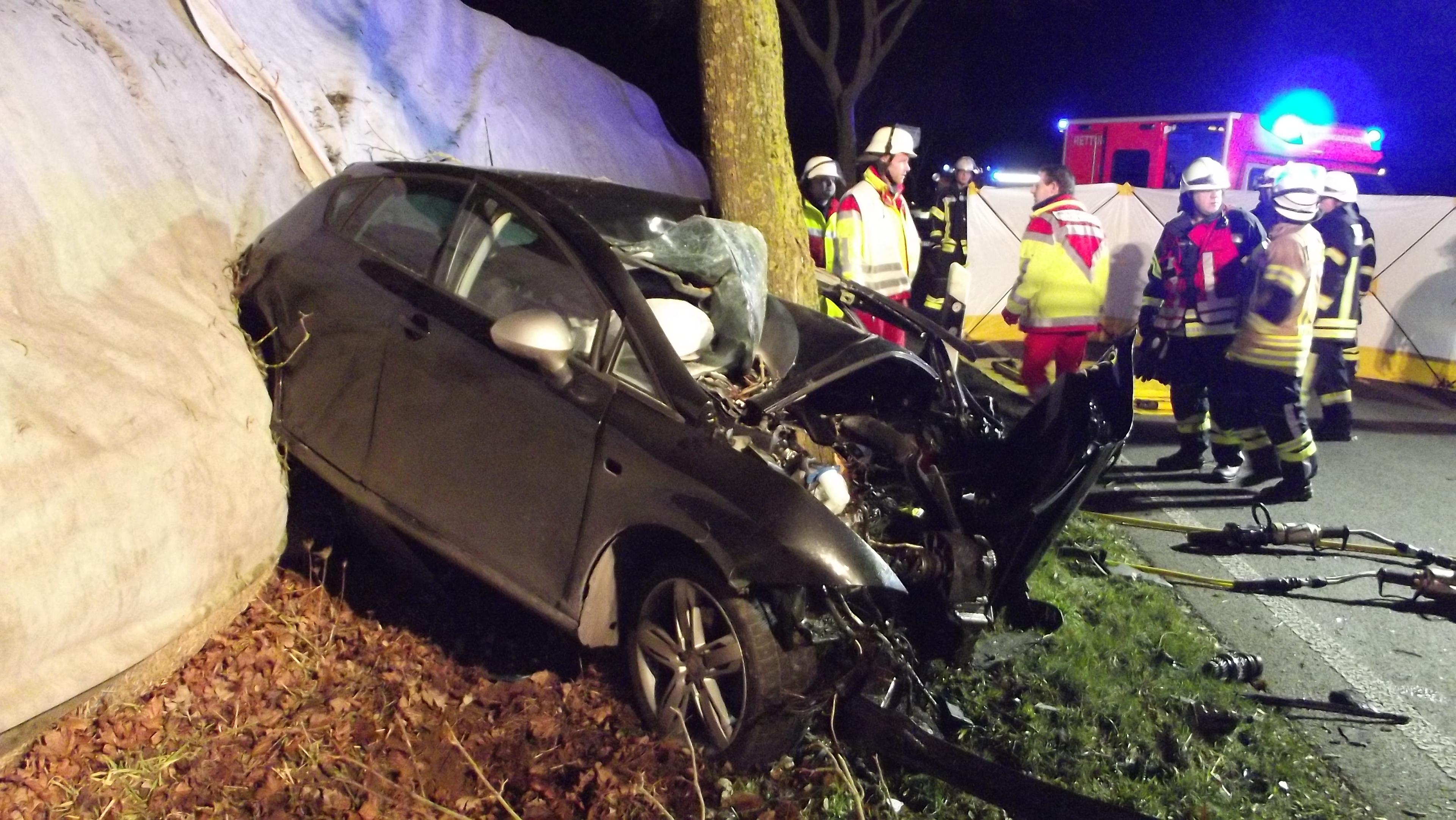 Ein 23jährige Fahrer aus Kleve befuhr die Sommerlandstraße von Till-Moyland kommend in Fahrtrichtung Kleve. Zwischen den Straßen Alter Kirchweg und Moyländer Allee verlor er die Kontrolle über seinen Seat Leon, kam rechts von der Fahrbahn ab und prallte frontal in einen Straßenbaum.