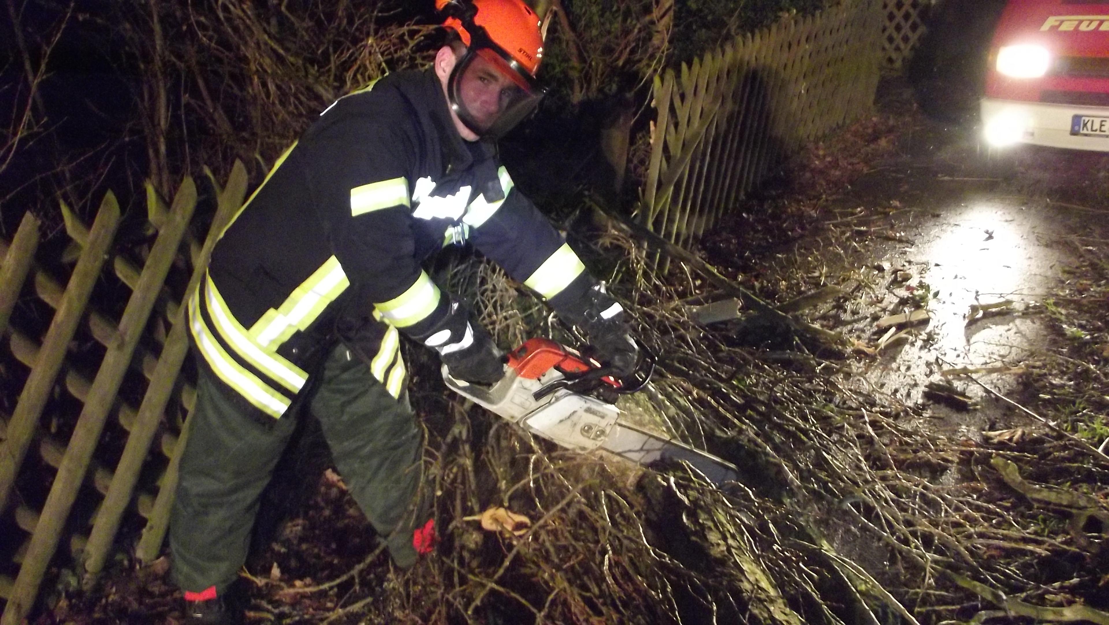Die Einsatzstellen lagen auf der Friedensstraße, der Bundesstraße 57 (Kalkarer Straße), Zum Weintal, Uedemer Straße und Lerchenweg. Umgestürzte Bäume und herabgefallene Äste mussten mit Kettensägen zerkleinert und beseitigt werden.