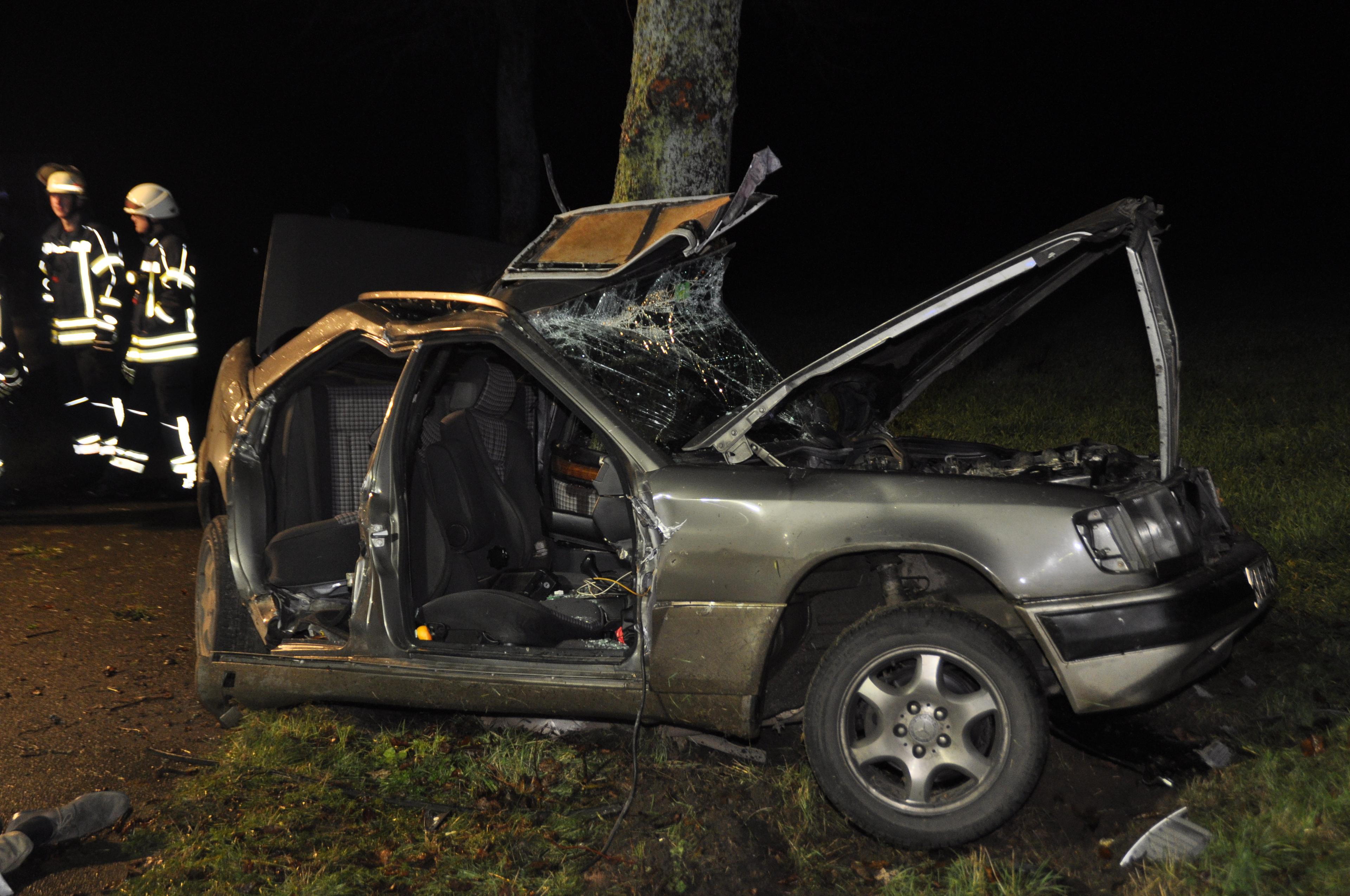 Beim Eintreffen der Einsatzkräfte konnte jedoch nur noch der Tod, des in seinem Mercedes eingeklemmten, 24jährigen Fahrers aus Goch festgestellt werden. Zuvor hatte er mit seinem Fahrzeug, die Berk'sche Straße von der Alten Bahn kommend befahren und hatte mit hoher die Geschwindigkeit die Kreuzung Kalkarer Straße (B57) in Fahrtrichtung Till-Moyland überquert. Kurz nach der Kreuzung kam er mit seinem Fahrzeug nach rechts von der Fahrbahn ab, drehte sich und prallte mit der Fahrerseite gegen einen Straßenbaum. Die Wucht des Aufpralls war so groß, dass der 24jährige in seinem Fahrzeug eingeklemmt wurde. Unfallzeugen alarmierten sofort die Feuerwehr und den Rettungsdienst. Sie wurden von den Einsatzkräften betreut.