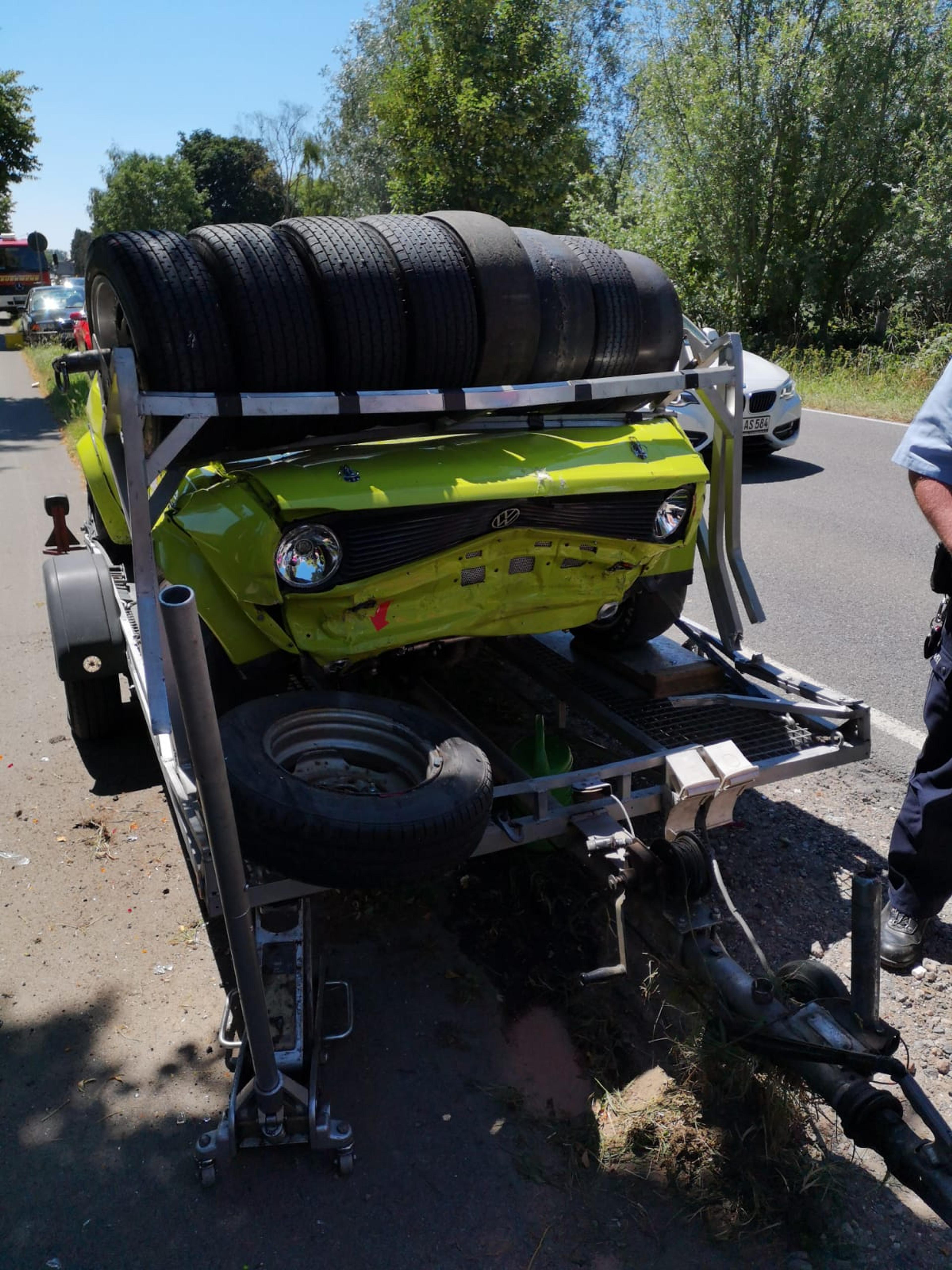 Auslaufende Betriebsstoffe, PKW vom Anhänger gefallen