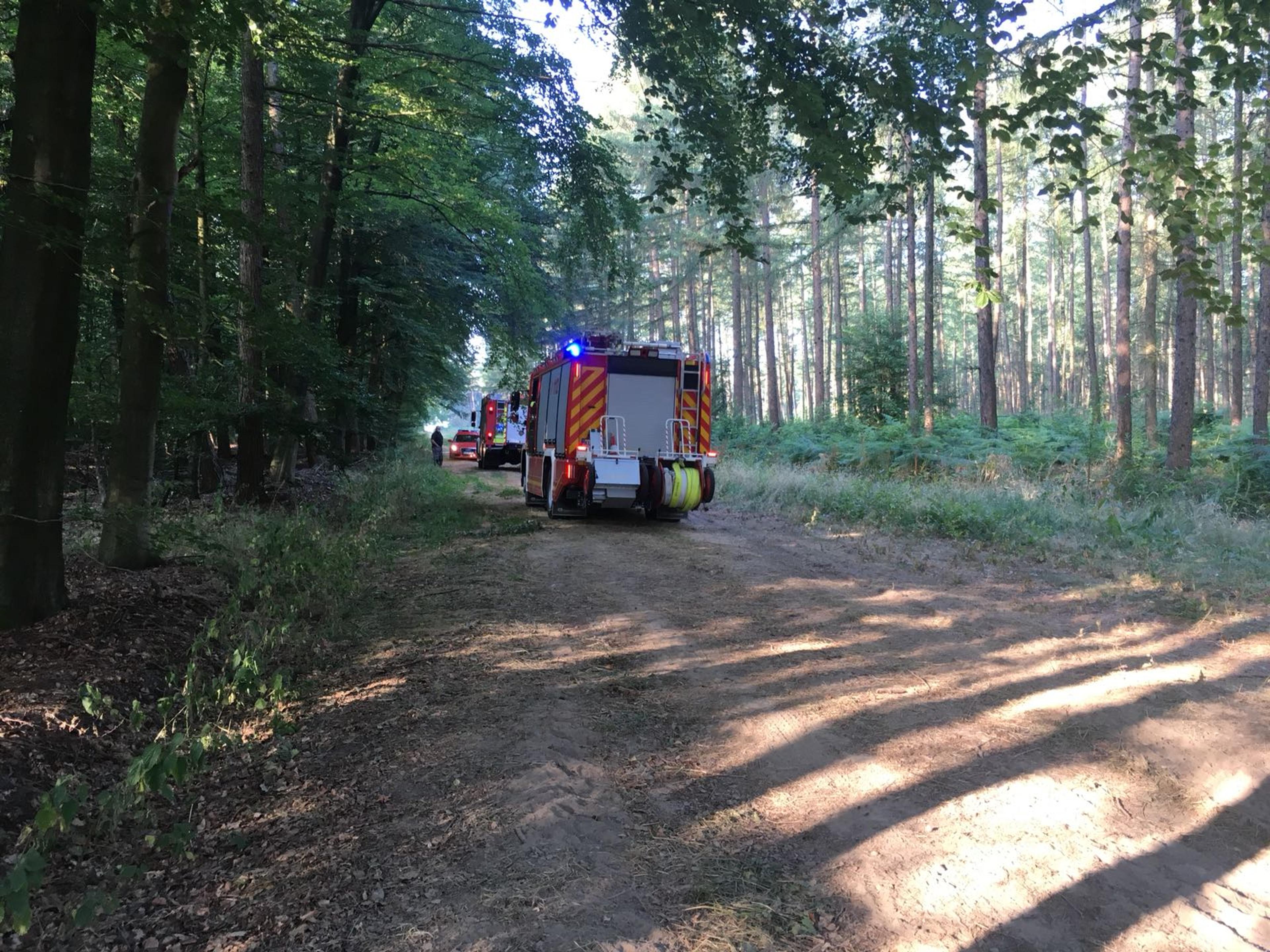 Um 07:30 Uhr rückte die Freiwilligen Feuerwehr Bedburg-Hau zu der Einsatzstelle aus, die mehrere hundert Meter im Wald lag. Über einen Waldweg war sie aber gut erreichbar. Löschversuche der Waldarbeiter mit einem Feuerlöscher konnten vor Eintreffen der Feuerwehr eine weitere Ausdehnung verhindern. Die Einsatzkräfte konnten die letzten Flammen bekämpfen, so dass das Feuer sich nur auf einen kleinen Bereich ausdehnen konnte. Mit mehreren tausend Litern Wasser wurde anschließend dafür gesorgt, dass es zu keiner Wiederentzündung kommen kann.