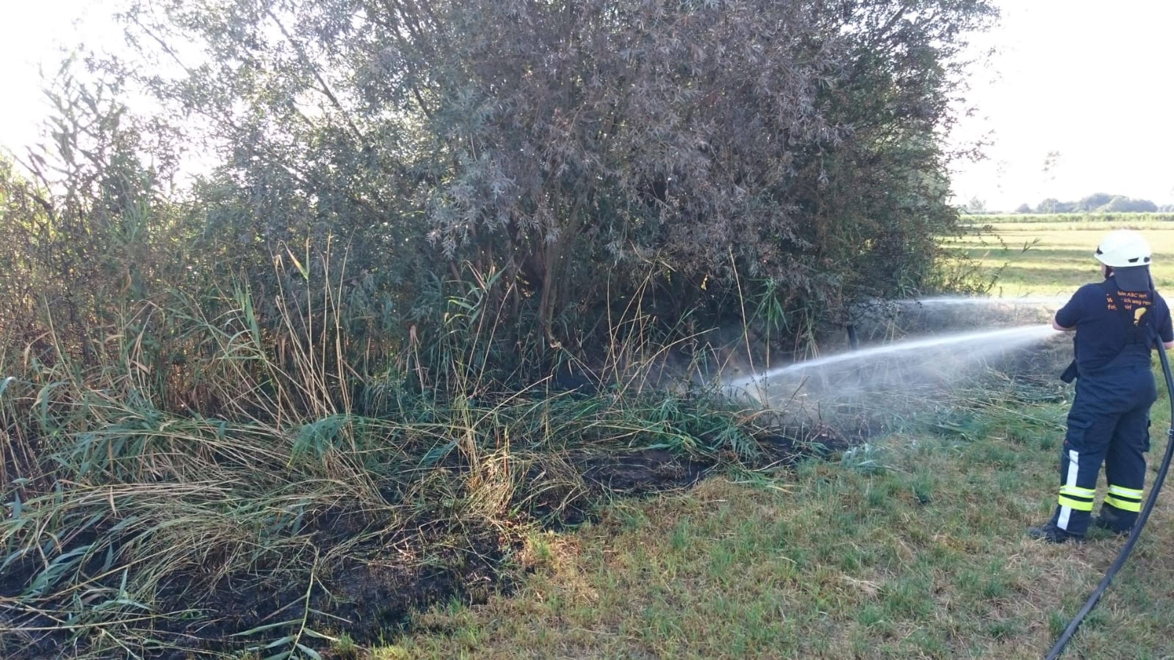 Gemeldeter Flächenbrand an einem Graben, der sich auf einen Bereich von etwa 100m2 ausgedehnt hatte, im Bereich der Hasselt'schen Spick. Einsatz mehrerer C-Rohre mit 4500 Litern Wasser. Das Feuer hatte auf trockenes Gras, Schilf und teils auch schon Sträucher/ Strauchwerk übergegriffen. Die Rauchwolke war auch aus der Entfernung sichtbar.