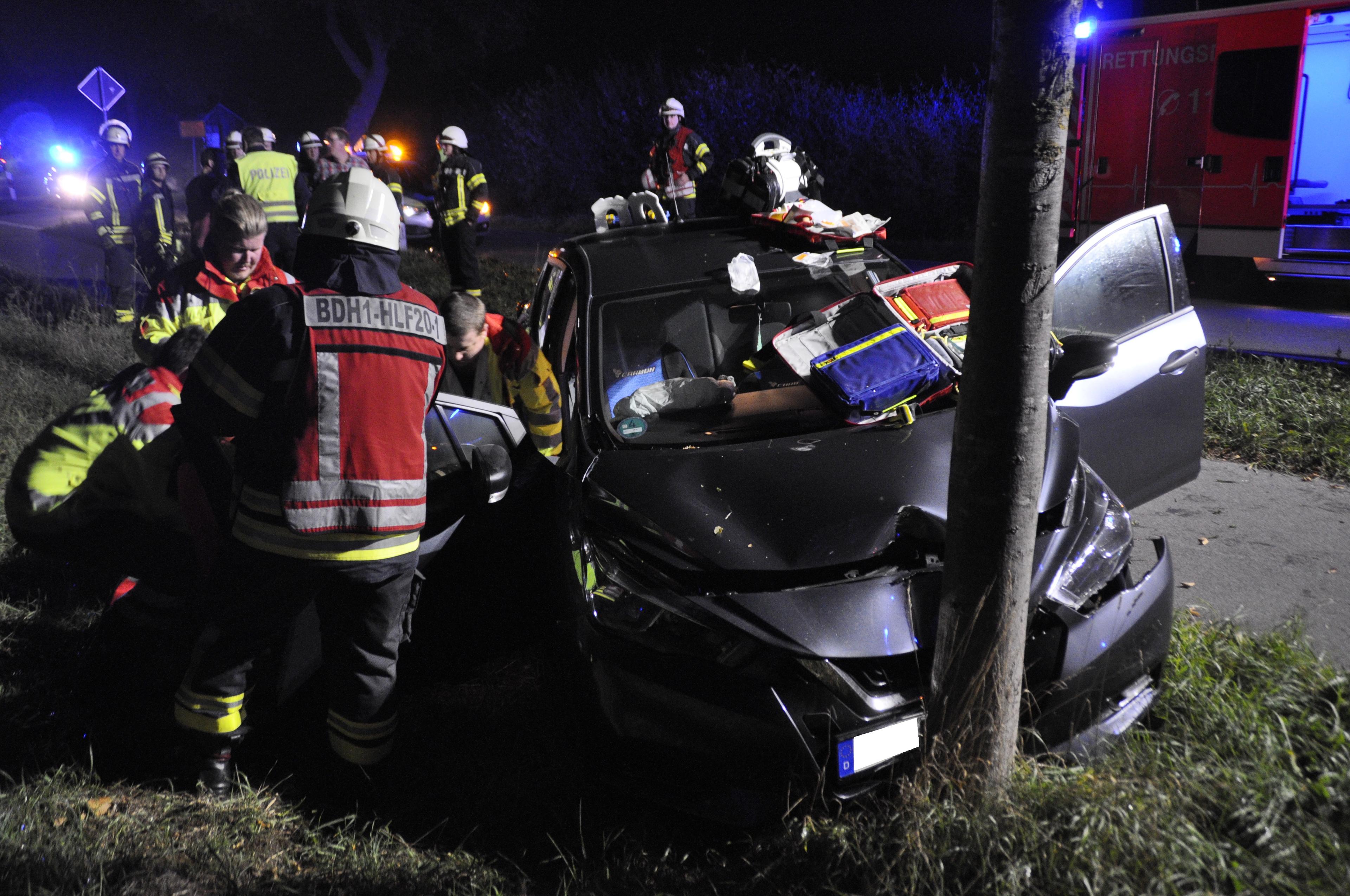 Verkehrsunfall, 24jährige Fahrerin prallt frontal gegen Straßenbaum
