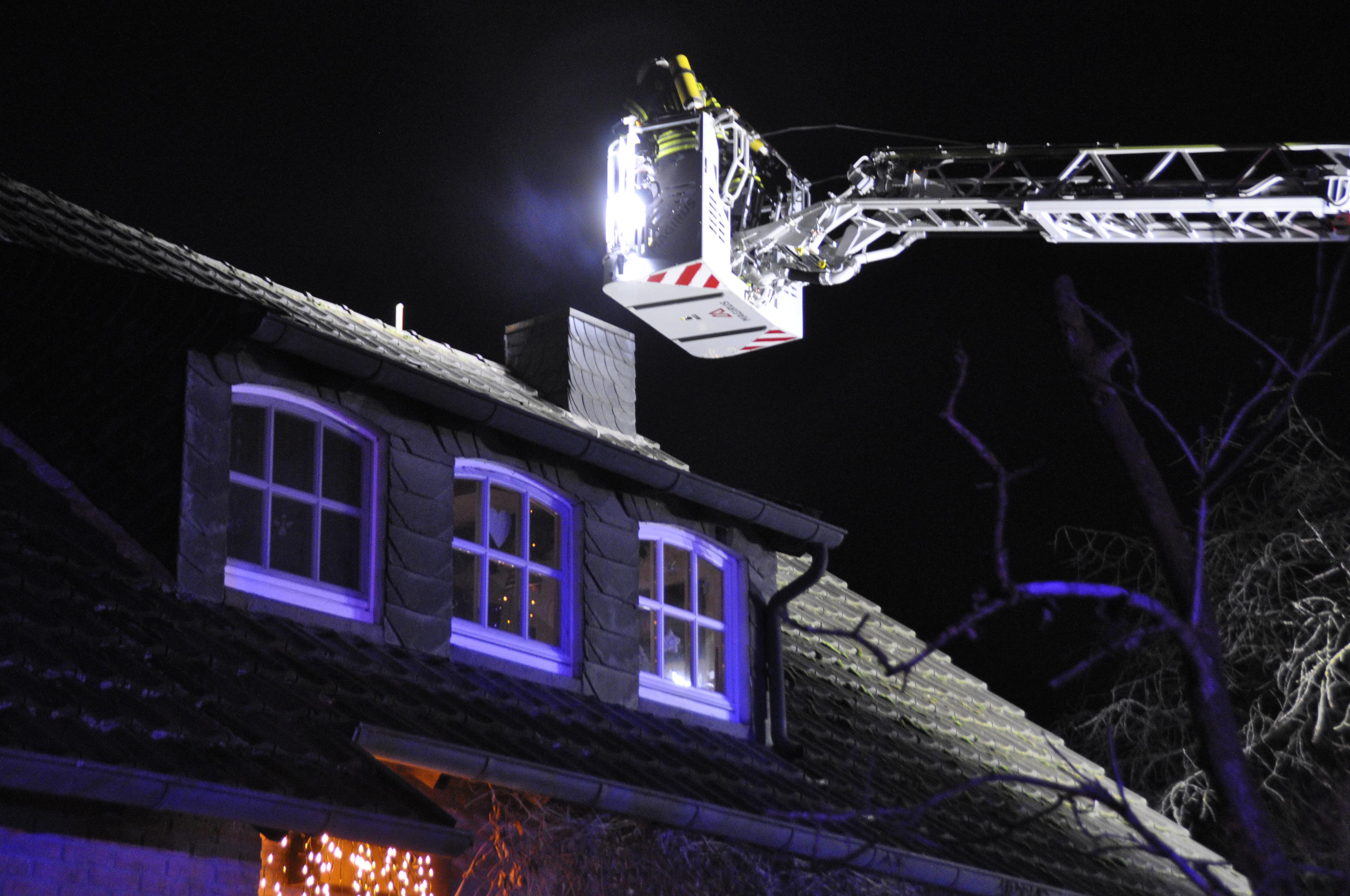 Um 17:29 Uhr wurde die Freiwillige Feuerwehr Bedburg-Hau sowie der Rettungsdienst des Kreises Kleve alarmiert. Die Einsatzkräfte löschten den Brand unter schwerem Atemschutz und kehrten in Absprache mit dem Bezirksschornsteinfegermeister den Kamin vom Dach aus mit dem Korb der Drehleiter und kontrollierten die betroffenen Bereiche mittels Wärmebildkamera.