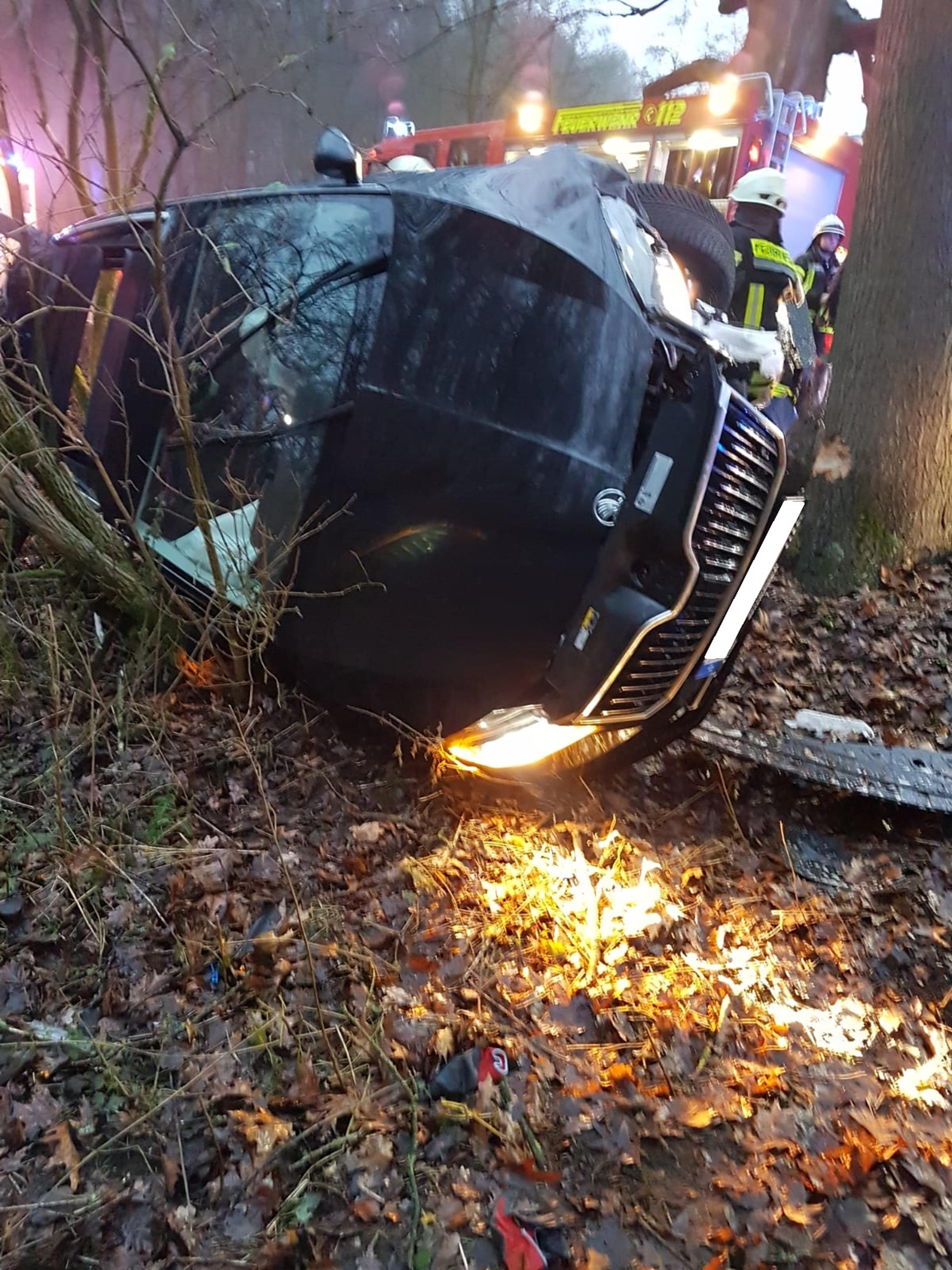 Glück im Unglück hatte am Donnerstagmorgen ein Autofahrer auf der Moyländer Allee in Till-Moyland. Nach Polizeiangaben verlor ein 43 Jahre alter Mann aus Bedburg-Hau aus bislang unbekannter Ursache in Höhe des ehemaligen Moyländer Forsthauses die Kontrolle über seinen Wagen und prallte gegen einen Baum. Mit leichten Verletzungen konnte er vom Rettungsdienst aus dem umgekippten Auto befreit und in ein Krankenhaus gebracht werden. Die Feuerwehr, die unter der Leitung von Gemeindebrandinspektoren Stefan Veldmeijer und Klaus Elsmann mit insgesamt 30 Kräften im Einsatz war, sicherte das Fahrzeug und die Unfallstelle.