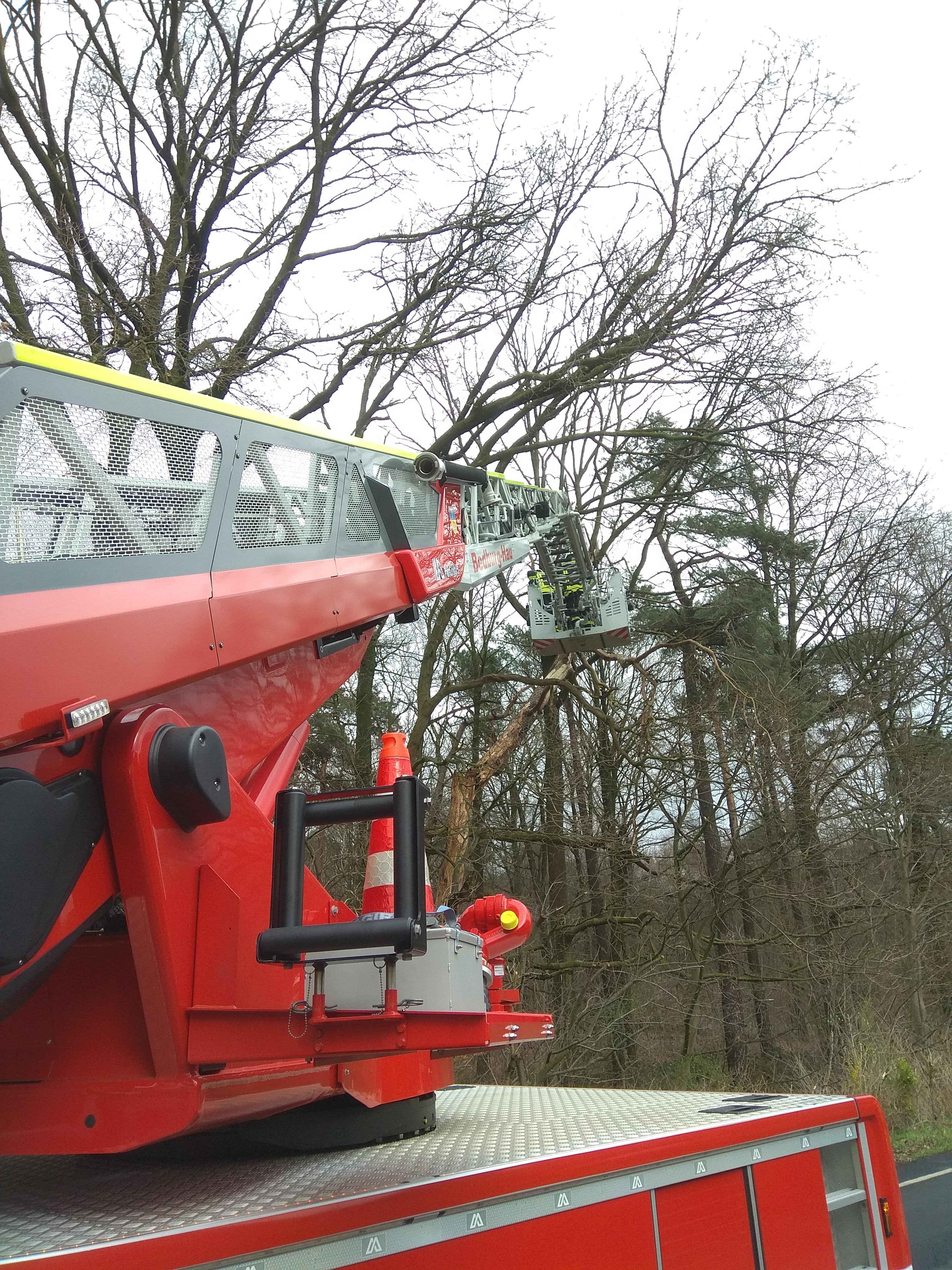 Baum wurde mit Unterstützung der Drehleiter zersägt.