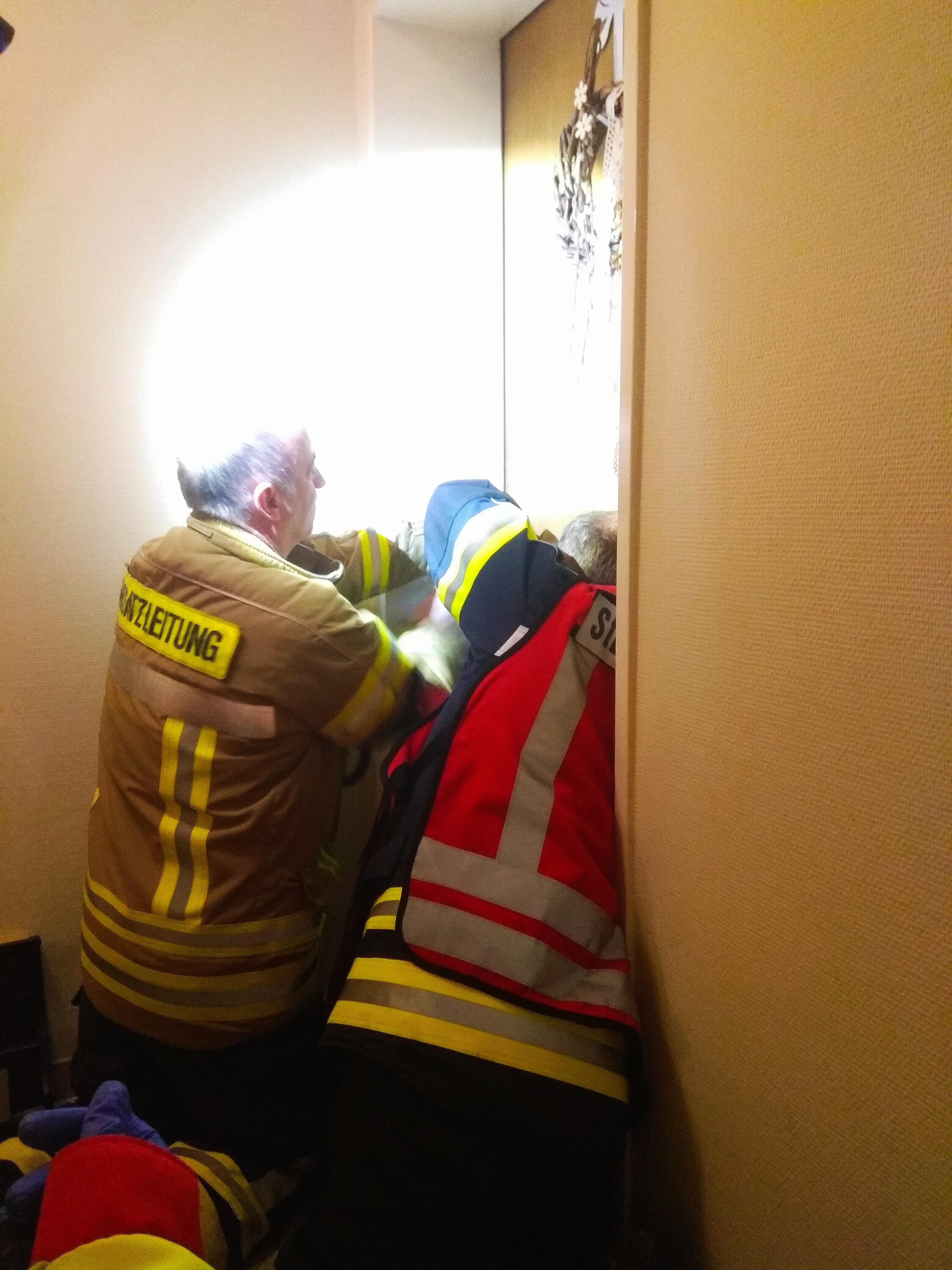 Bewohnerin war in Wohnung gestürzt und konnte die Wohnungstüre nicht alleine öffnen. Wurde vom Rettungsdienst ins Krankenhaus transportiert.