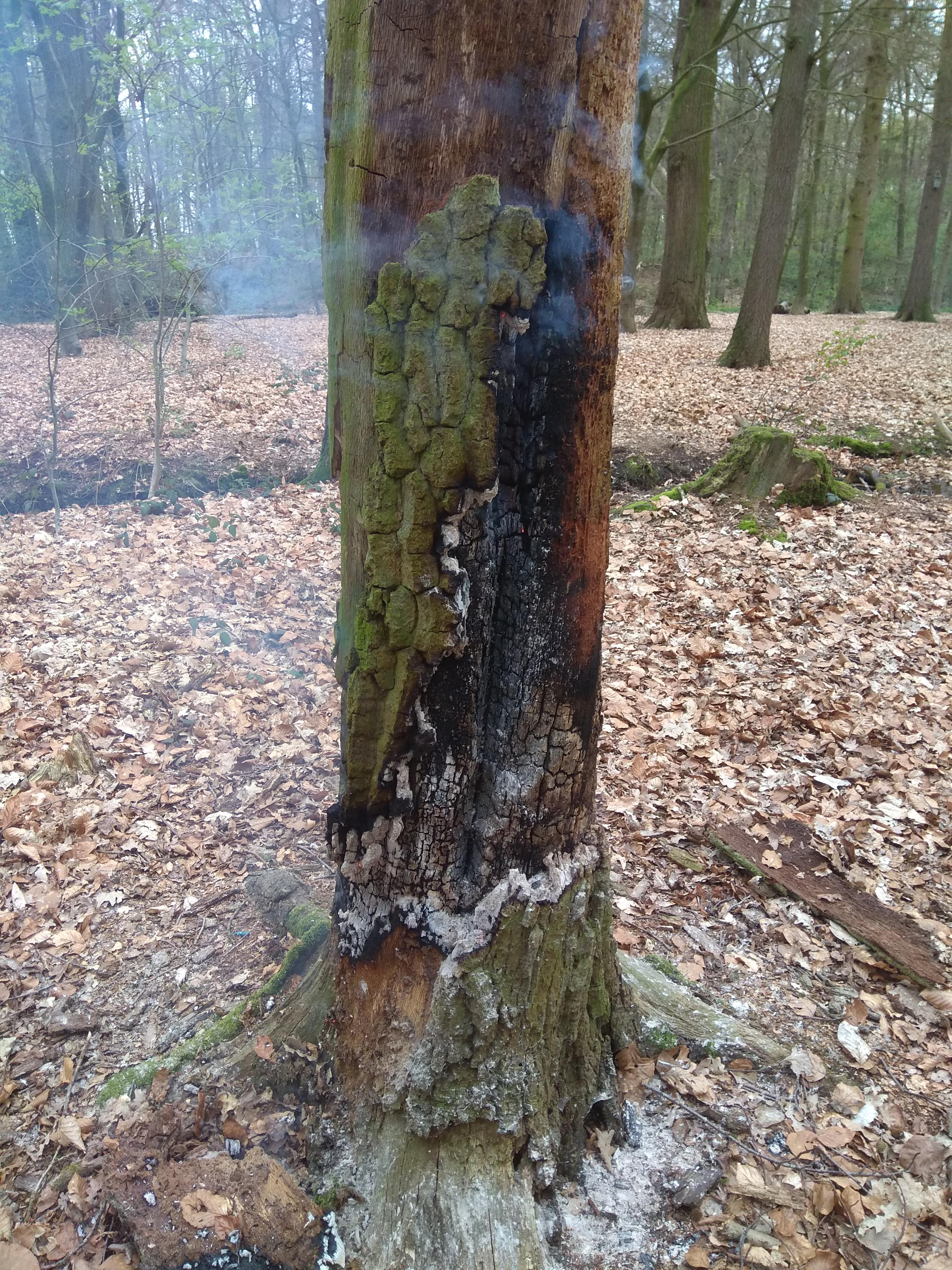Ein brennender Baum im Wald am Bedburger Weg in Hasselt sorgte am Freitagnachmittag (12.04.2019) für einen Feuerwehreinsatz. Aus unbekannter Ursache hatte ein Baum im hinteren Bereich der Torfkuhle Feuer gefangen. Spaziergänger hatten eine starke Rauchentwicklung wahrgenommen und um 16:03 Uhr die Freiwillige Feuerwehr Bedburg-Hau alarmiert. Mit einem Hochdrucklöschgerät konnte das Feuer schnell gelöscht und eine weitere Ausdehnung verhindert werden.