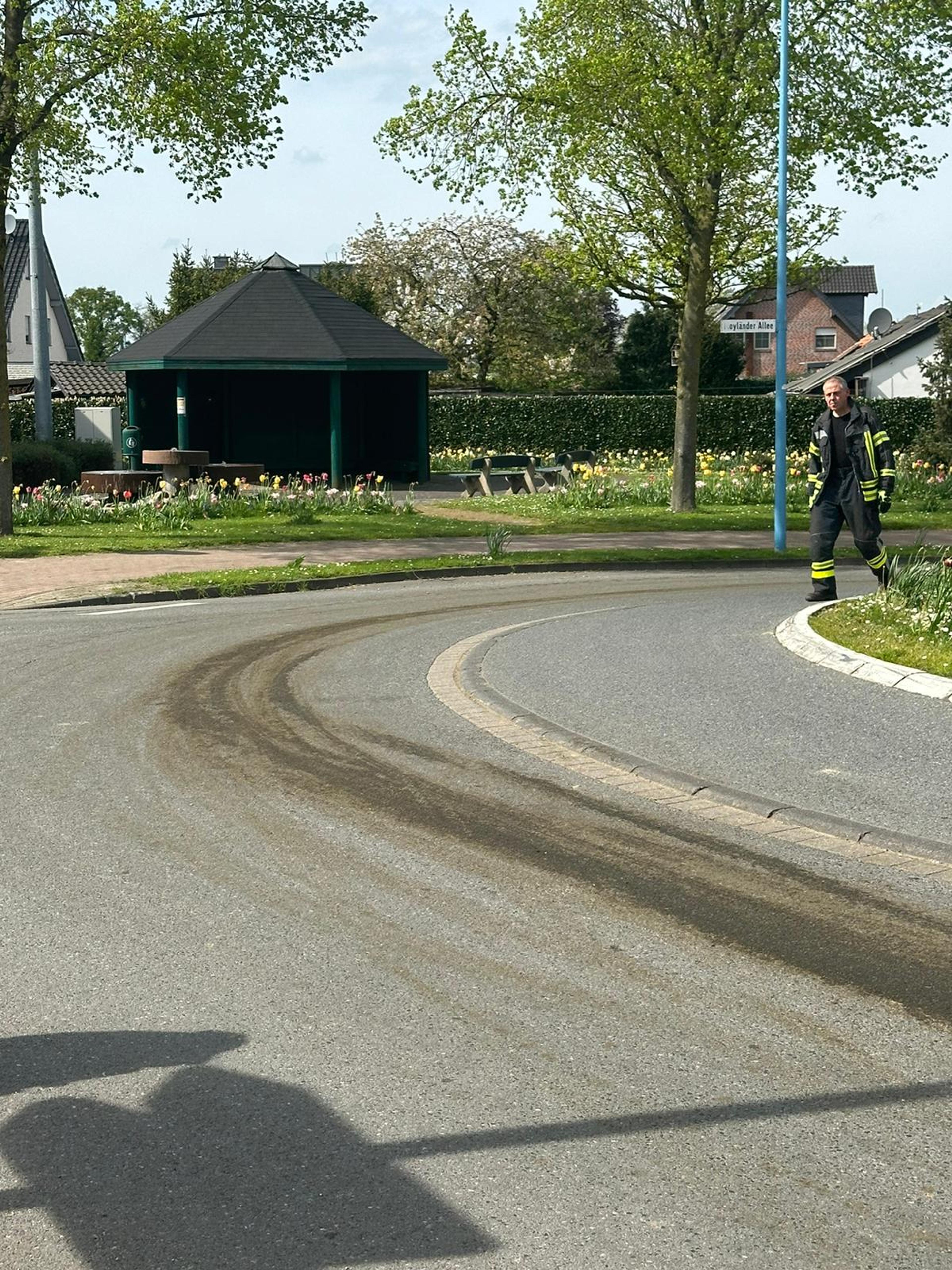 Im Bereich des Kreisverkehrs an der Sommerlandstraße kam es zu einer Verschmutzung durch ausgelaufene Gülle. Durch die Verschmutzung kam es zu einem Eigenunfall eines Motorrollerfahrers. Er stürzte und verletzte sich leicht. Die Straße wurde durch die Feuerwehr gereinigt.