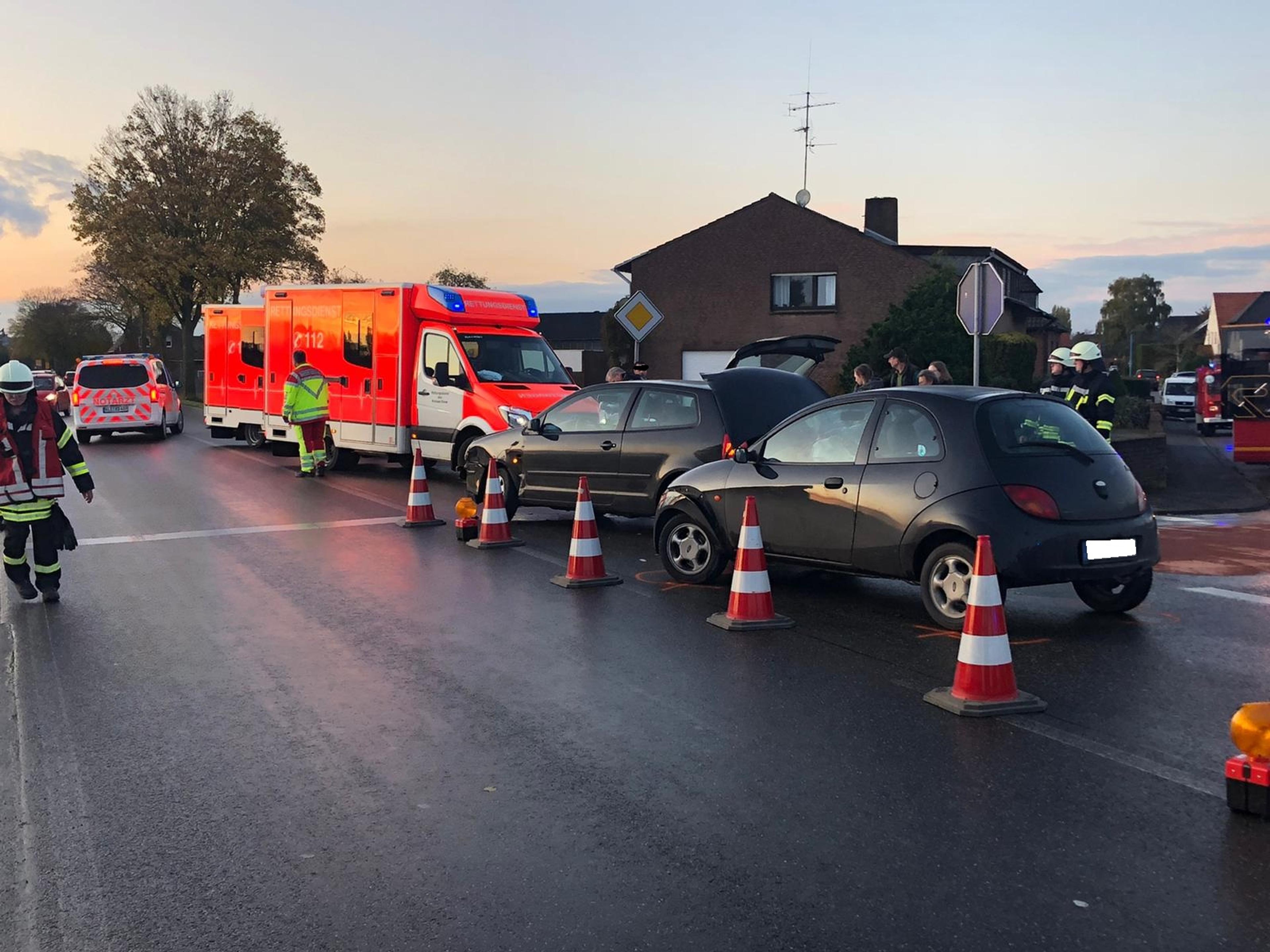 Im Einmündungsbereich Kalkarer Straße (B57) und Koppelstraße kam es gestern (07.11.20149) gegen 16:30 Uhr zu einem Verkehrsunfall. Dabei wurden drei Personen verletzt. Zwei Fahrzeuge waren zusammengestoßen. Um 16:31 Uhr wurde die Freiwillige Feuerwehr Bedburg-Hau sowie der Rettungsdienst des Kreises Kleve alarmiert. Darunter drei Rettungswagen und ein Notarzteinsatzfahrzeug.