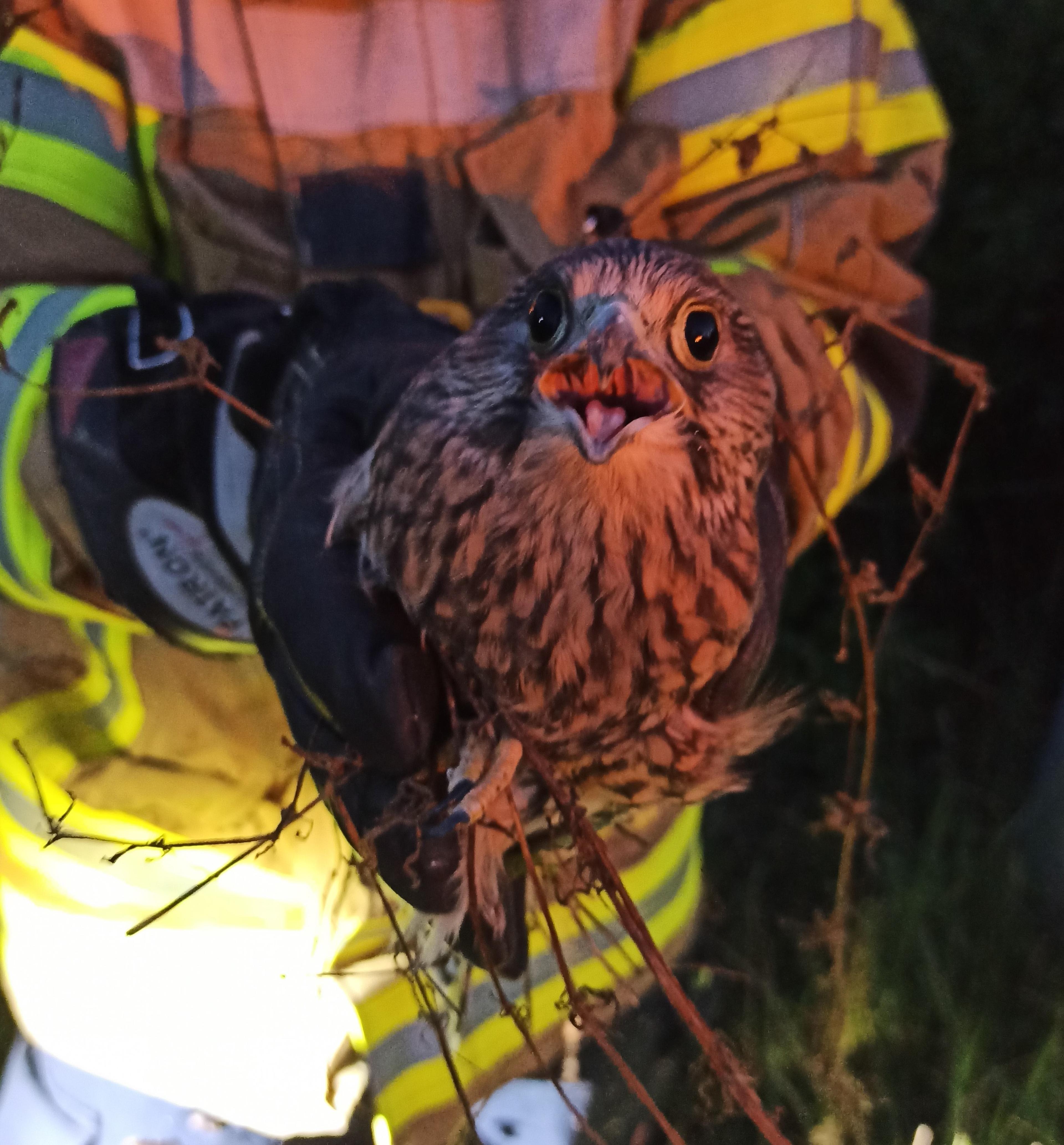Am Donnerstagabend (25.06.2020) wurde die Freiwillige Feuerwehr Bedburg-Hau um 21:38 Uhr zu einer Tierrettung auf die Sommerlandstraße in Till-Moyland alarmiert. Ein Radfahrerin hatte den Notruf gewählt, nachdem sie auf einen Bussard, der sich in Kabeln in einem Hochspannungsmast verfangen hatte, aufmerksam wurde. Da aufgrund der Hochspannung eine Gefahr für die Einsatzkräfte bestand, konnte der junge Greifvogel gemeinsam mit einem Mitarbeiter von Westnetz aus seiner misslichen Lage in luftiger Höhe befreit werden. Da er sich verletzt hatte, wurde er anschließend durch die Feuerwehr zu einem Tierarzt gebracht. Im Einsatz waren drei Einsatzkräfte der Freiwillige Feuerwehr Bedburg-Hau unter der Leitung von Gemeindebrandinspektor Stefan Veldmeijer.
