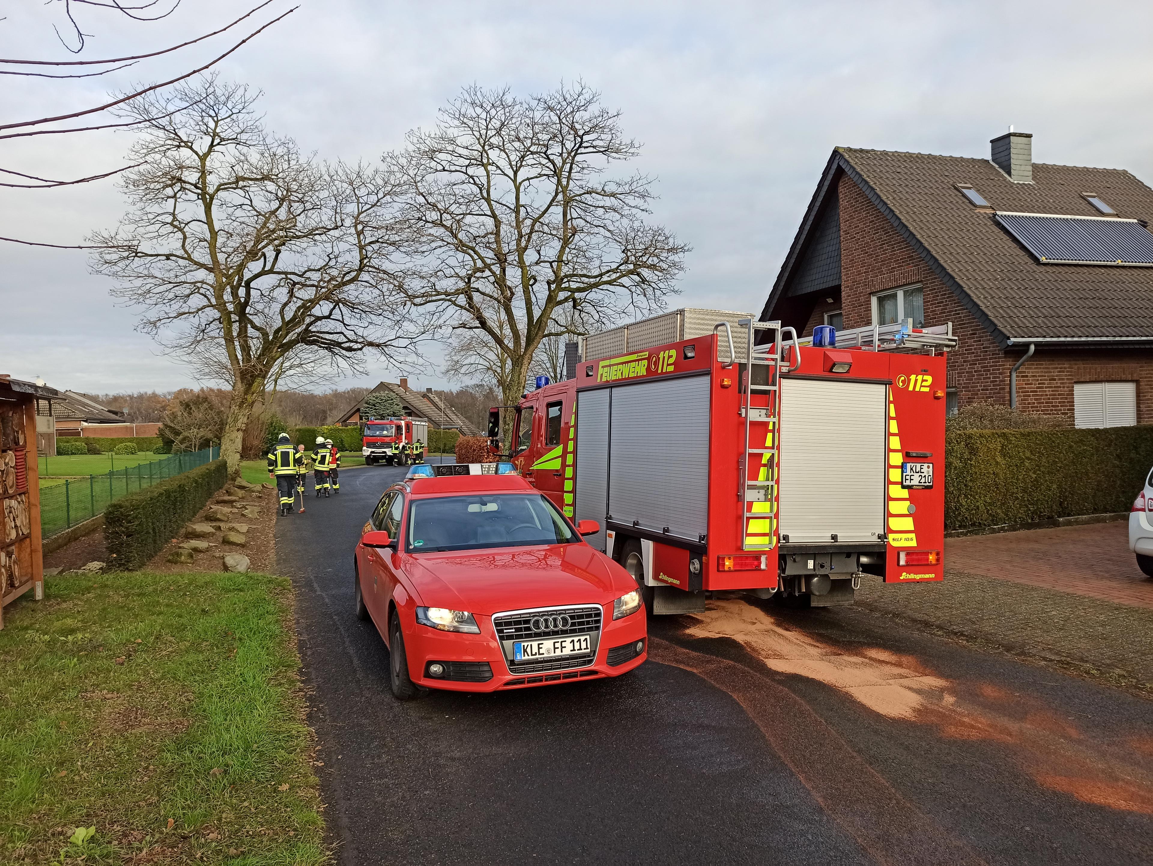 Ölspur im Bereich Birkenweg, Cranenkamp, Am Bersberg. Wurde zum Teil abgestreut und durch ein Fachunternehmen die Straße gereinigt.