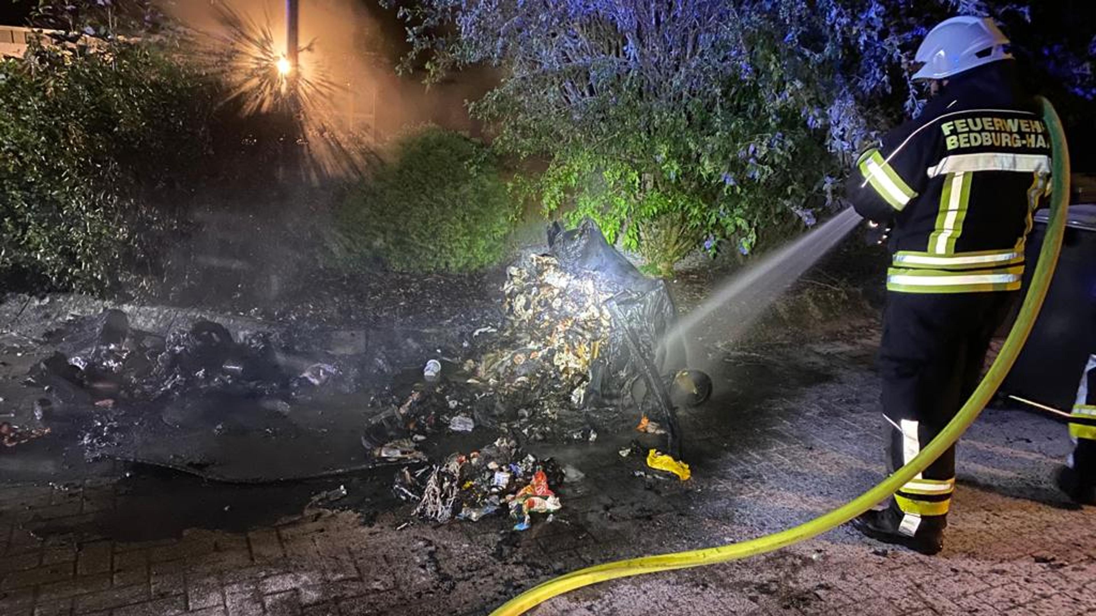 Insgesamt zum dritten Mal innerhalb der letzten 14 Tage musste die Freiwillige Feuerwehr Bedburg-Hau erneut zu einem Einsatz in den Fahnenkamp nach Hau ausrücken. Diesmal brannte am späten Samstagabend (31.07.2021) gegen 22:50 dort ein 1100-Liter Müllcontainer auf dem Gelände einer Einrichtung der Rheinischen Kliniken. Wenige Meter weiter hinter dem Gebäude stand dann noch ein Papierstapel in Flammen. Die Einsatzkräfte konnten das Feuer schnell löschen. Der Schaden blieb gering.