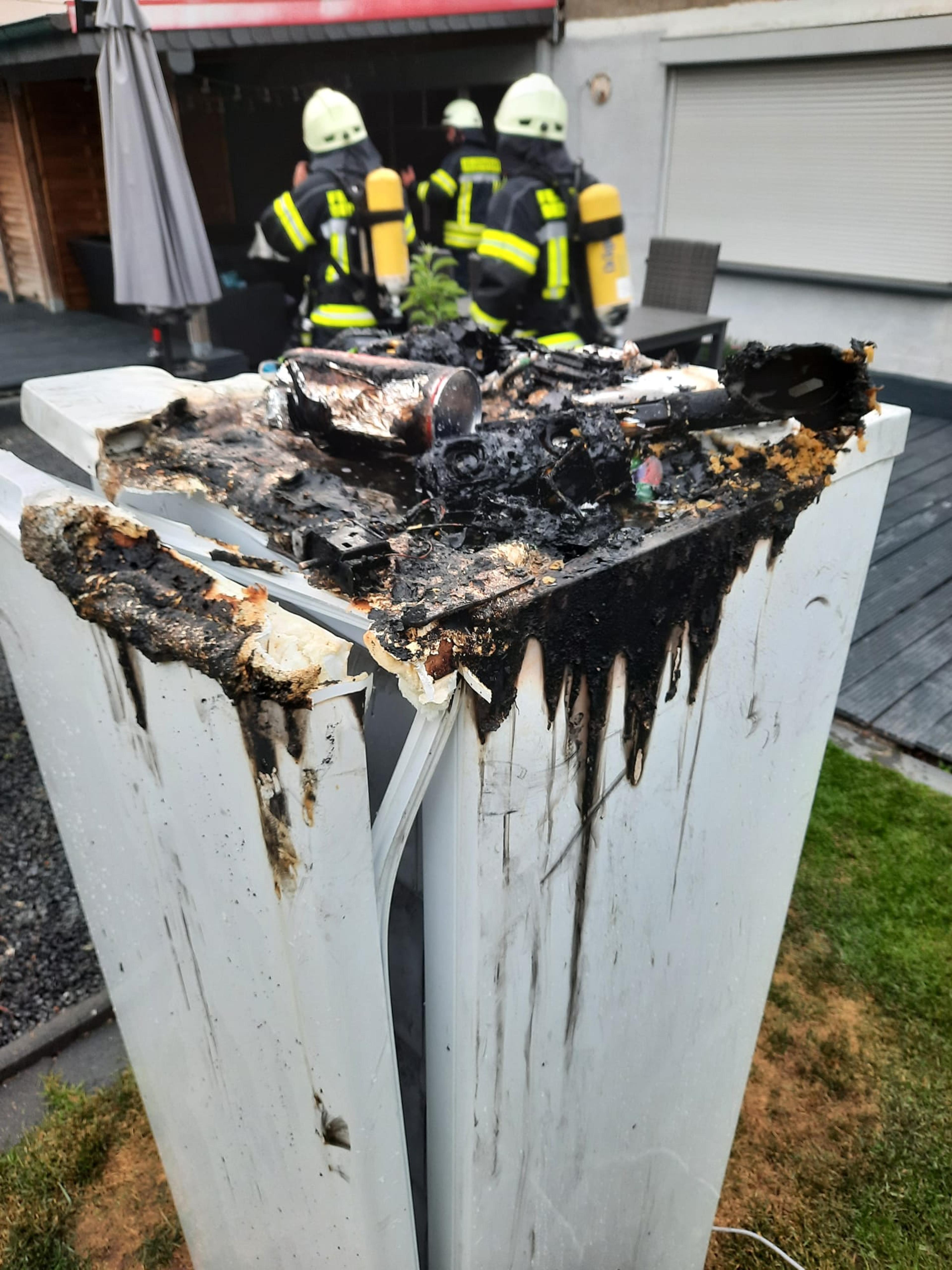 Wohnungsbrand, brennt Kühltruhe im Wintergarten