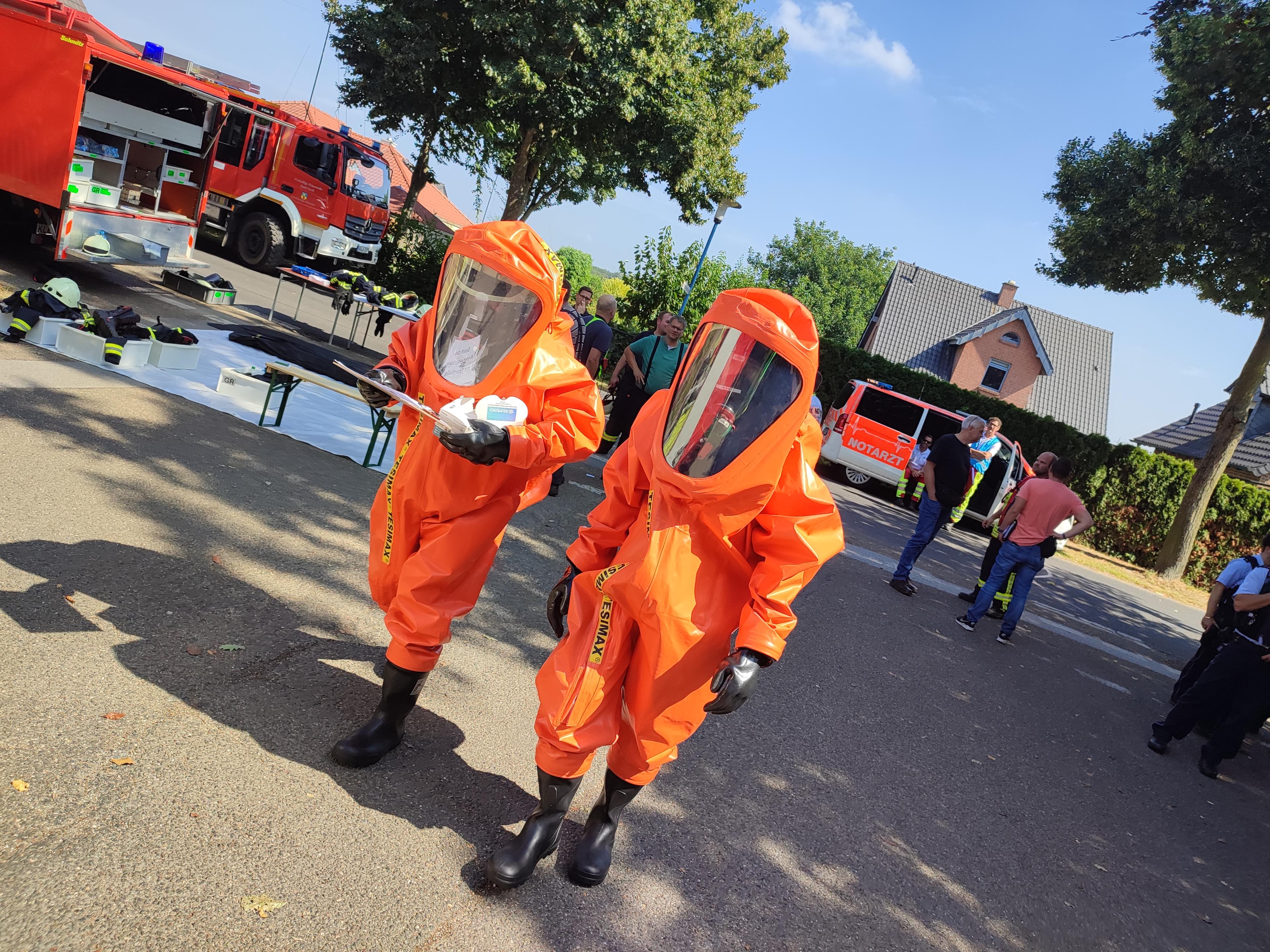 Die Freiwillige Feuerwehr Bedburg-Hau wurde heute (19.08.2022) um 13:13 Uhr zu einem Gefahrstoffeinsatz in eine Arztpraxis im Ortsteil Hau alarmiert. Mitarbeiter waren hier mit einem Stoff in Kontakt gekommen, bei dem zunächst nicht ausgeschlossen werden konnte, dass es sich um eine gefährliche Substanz handeln könnte.