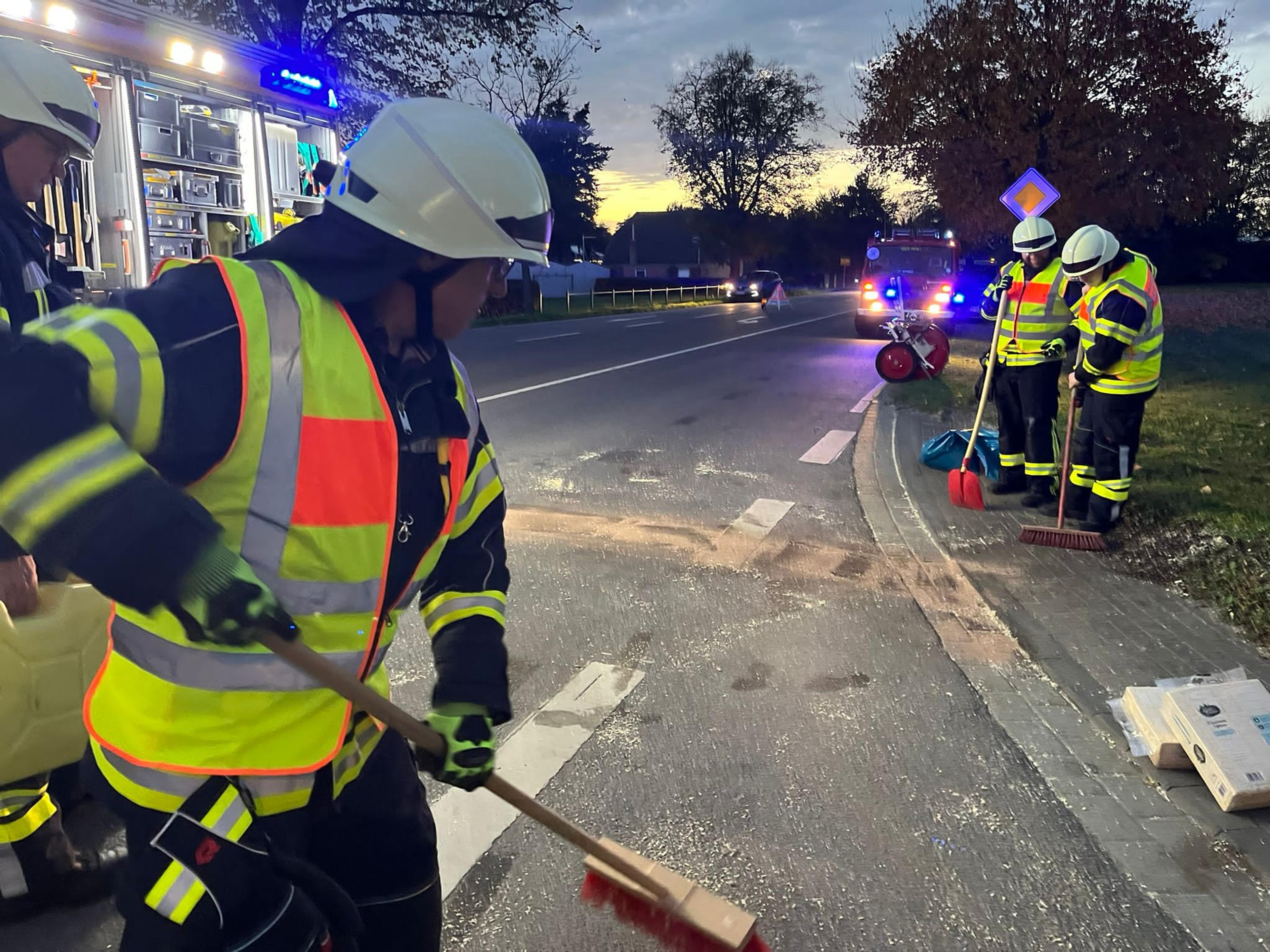 Ölspur im Bereich der B 57 / Kalkarerstr., sowie im Bereich Borschelstraße. PKW hatte vermutlich durch einen Defekt an der Ölwanne Betriebsflüssigkeiten verloren. Einsatzstelle wurde abgesichert, mit Ölbindemittel abgestreut/gereinigt und durch die Polizei freigegeben.