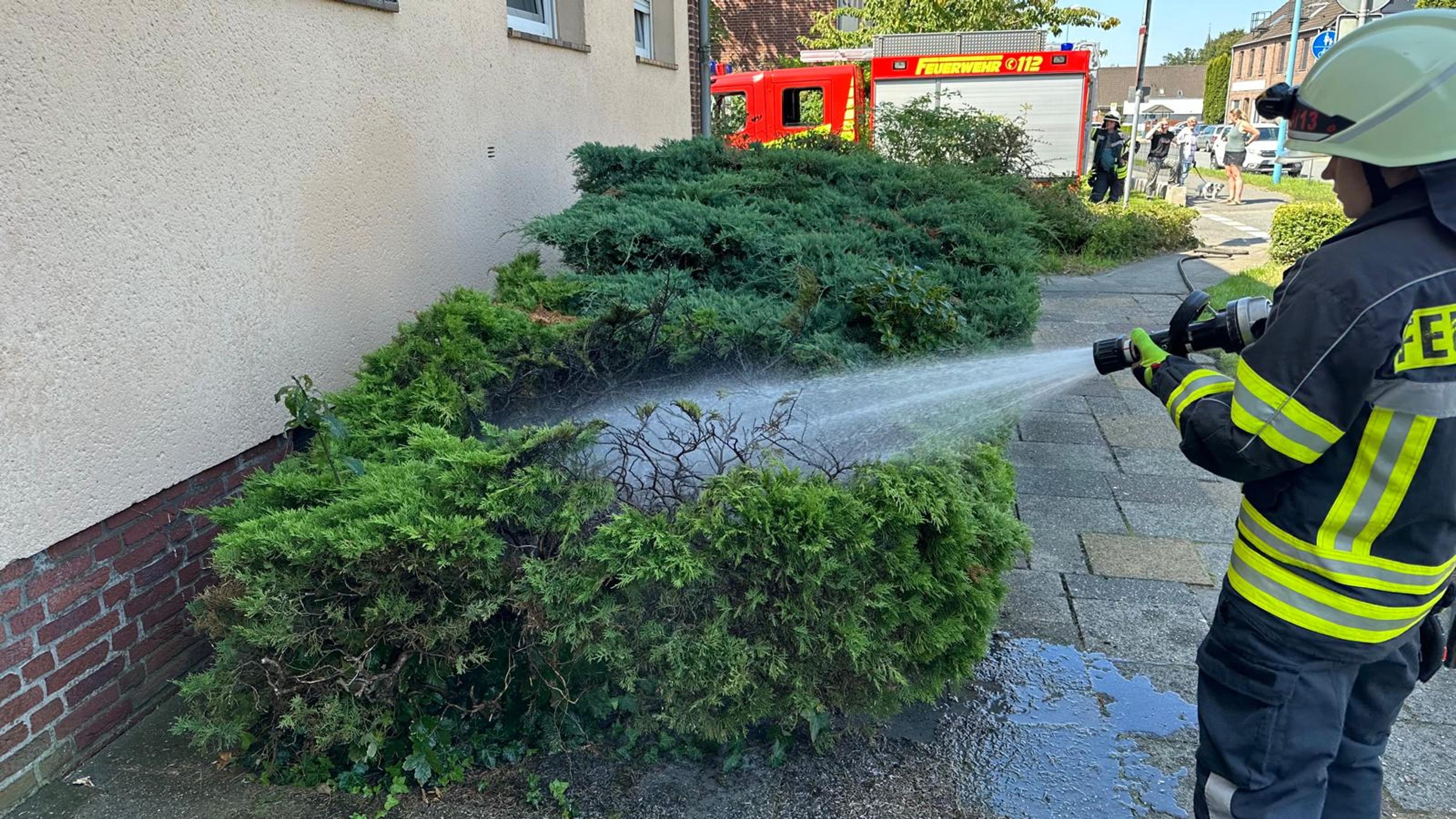 Heckenbrand durch Flämmarbeiten. Vor Eintreffen konnten Anwohner das Feuer löschen. Es wurden Nachlöscharbeiten durchgeführt.