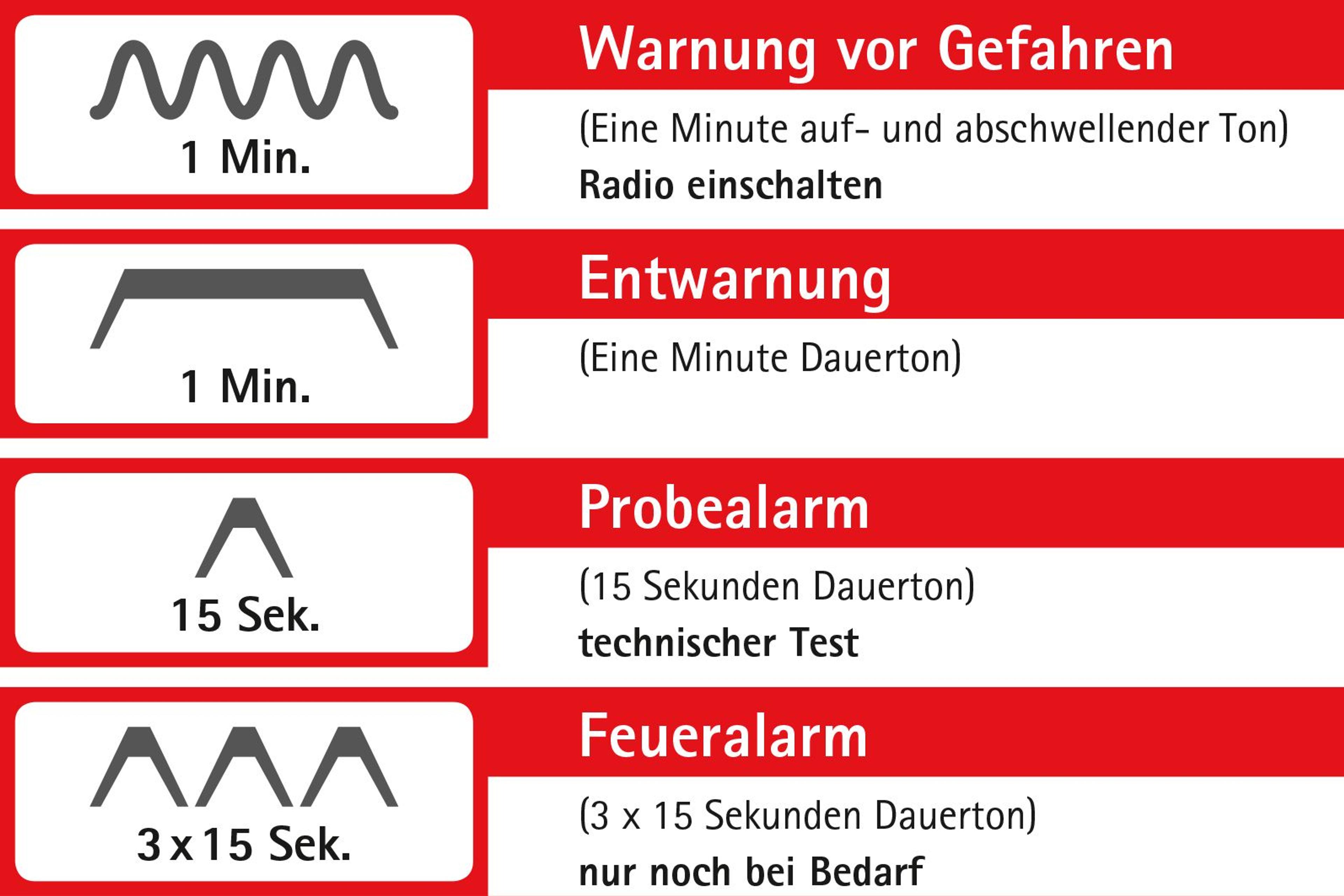 Am Donnerstag, 07. März 2019, gibt es einen „landesweiten Probealarm“. Dabei werden in ganz NRW die vorhandenen digitalen Sirenen durch die jeweiligen Leitstellen ausgelöst. Der Probealarm setzt sich aus einer Kombination von Sirenentönen zusammen: Entwarnung – Warnung – Entwarnung. Die Entwarnung erfolgt durch einen einminütigen Dauerton und die Warnung durch einen einminütigen, auf- und abschwellenden Heulton. Anschließend ist wieder ein einminütiger Entwarnungs-Dauerton zu hören. Zwischen den verschiedenen Warntönen gibt es eine kurze Pause. Ziel ist es, so das nordrhein-westfälische Innenministerium, die Bevölkerung für dieses Thema zu sensibilisieren.