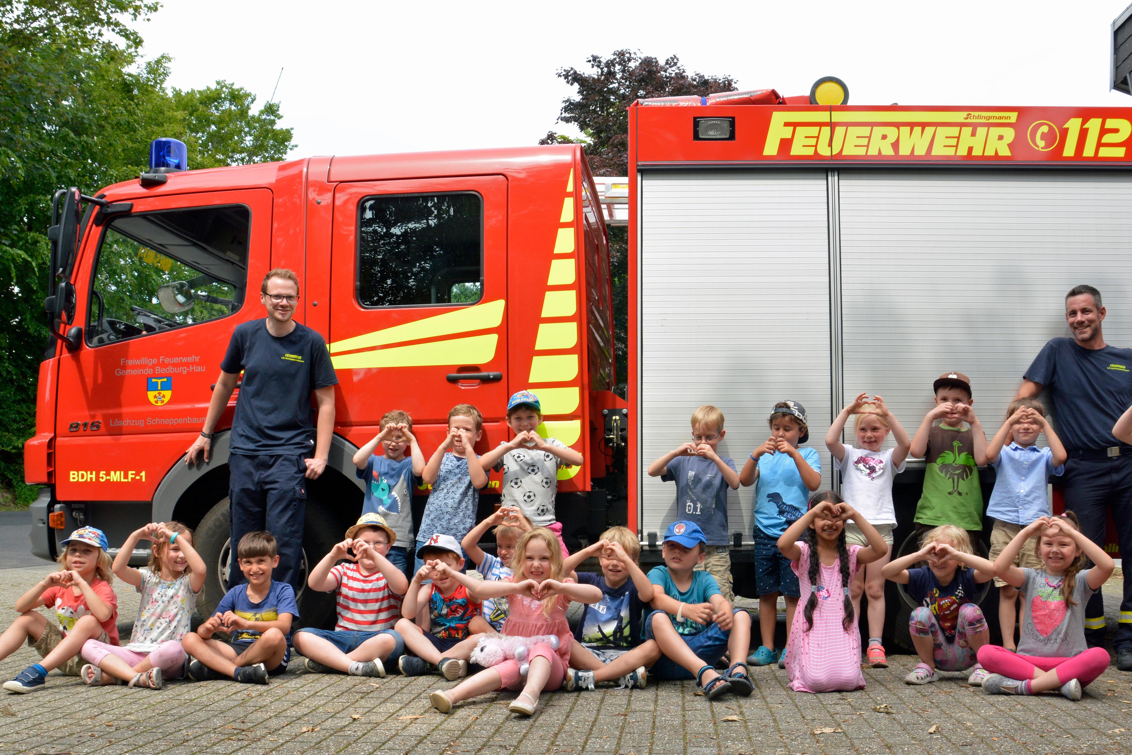 Wie kann ein Brand vermieden werden, oder wie setzt man einen Notruf ab? Auf diese Fragen bekamen die "Starken Löwen" bei der Freiwilligen Feuerwehr Bedburg-Hau Antworten. Gemeint sind damit die Vorschulkinder der Inklusiven Kindertagesstätte Lebensbaum aus Schneppenbaum.