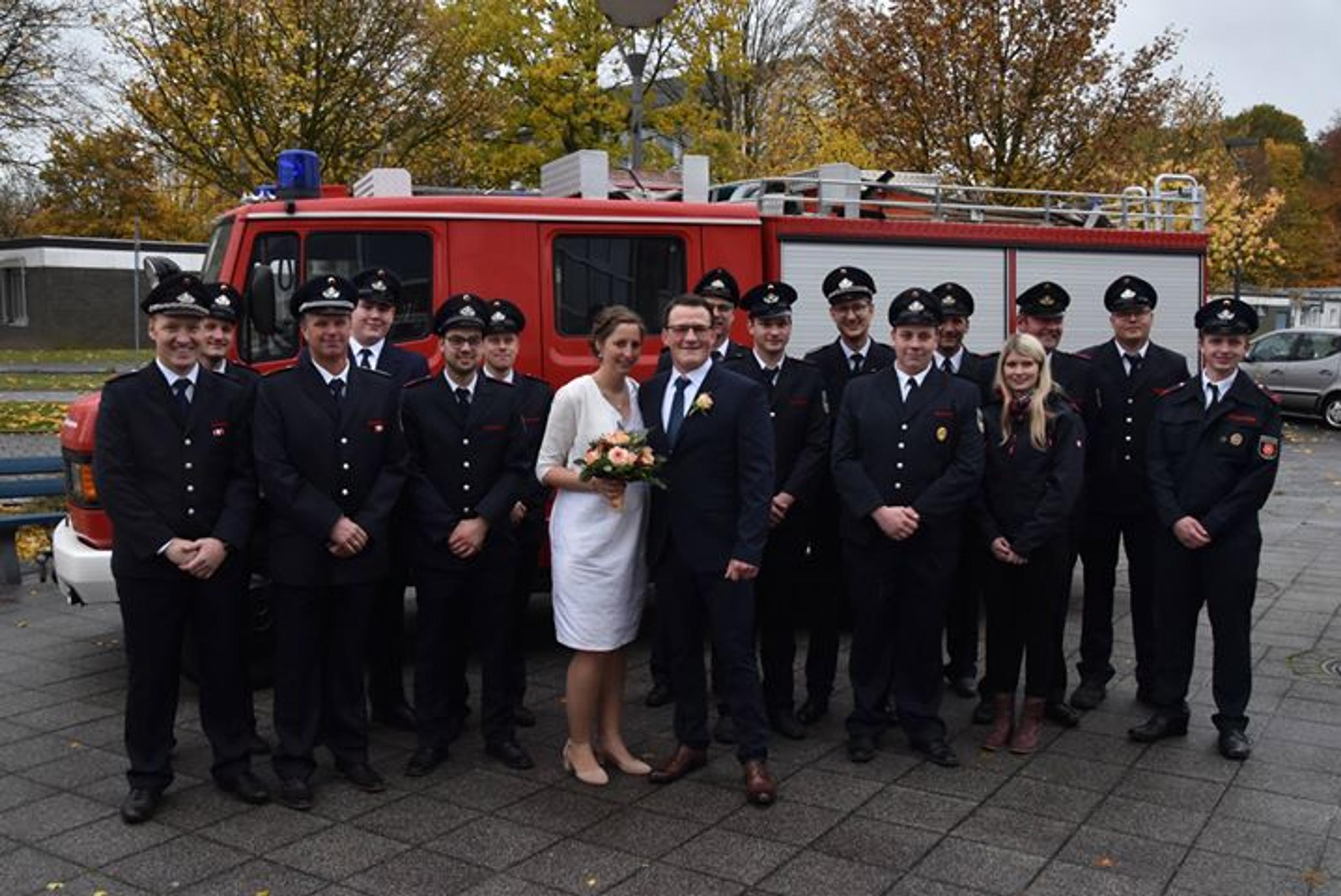 Ehrenspalier der Feuerwehr für Christian Flücken und Verena Schoofs