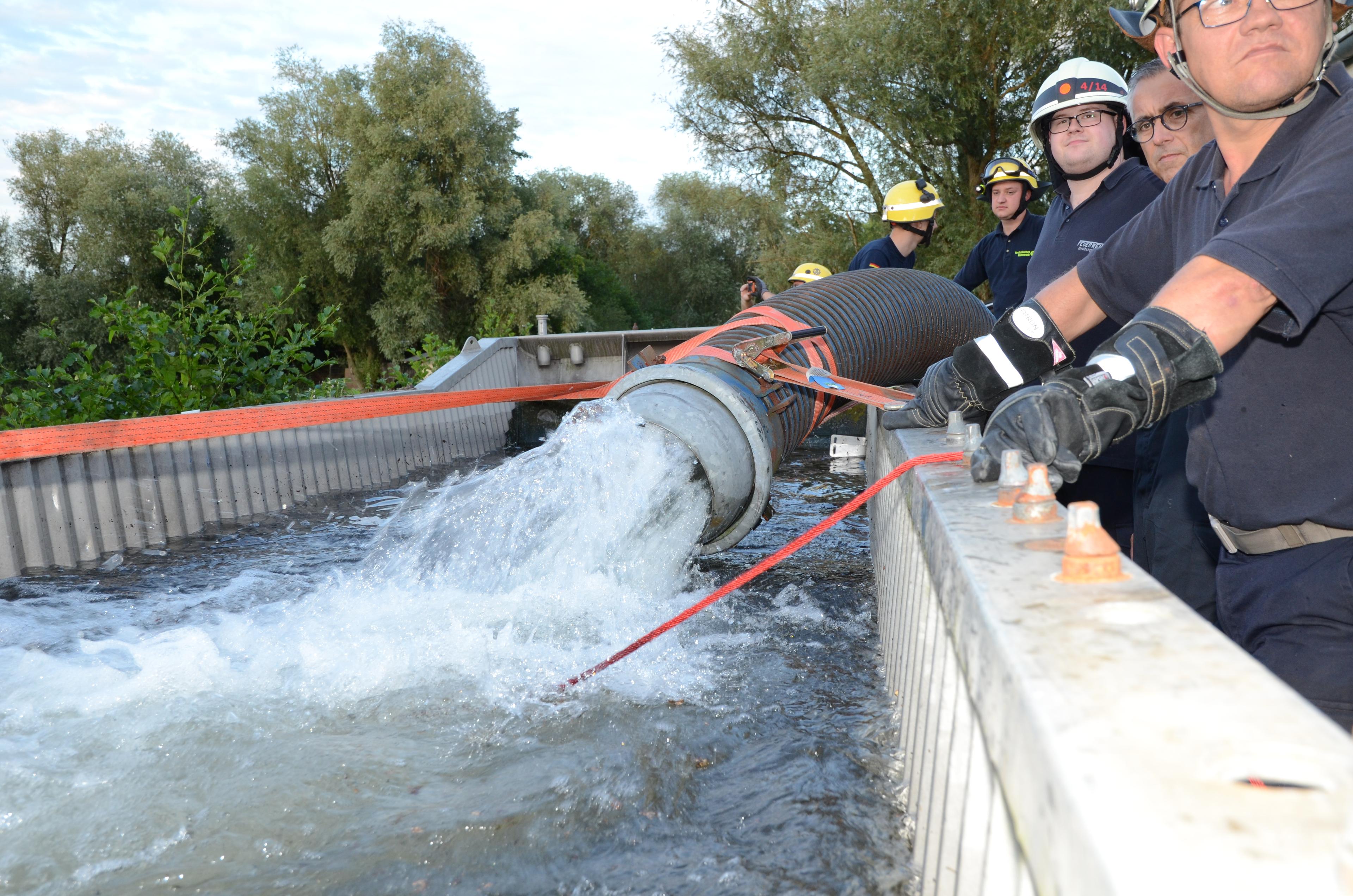 „Wasserförderung über lange Wegstrecken“ stand auf dem Ausbildungsplan der Freiwilligen Feuerwehr Bedburg-Hau. Um ein besseres Miteinander zu erreichen, wurde die Ausbildung mit Einsatzübung gemeinsam mit dem THW Ortsverband Kleve kurzfristig vorbereitet und erfolgreich abgearbeitet.