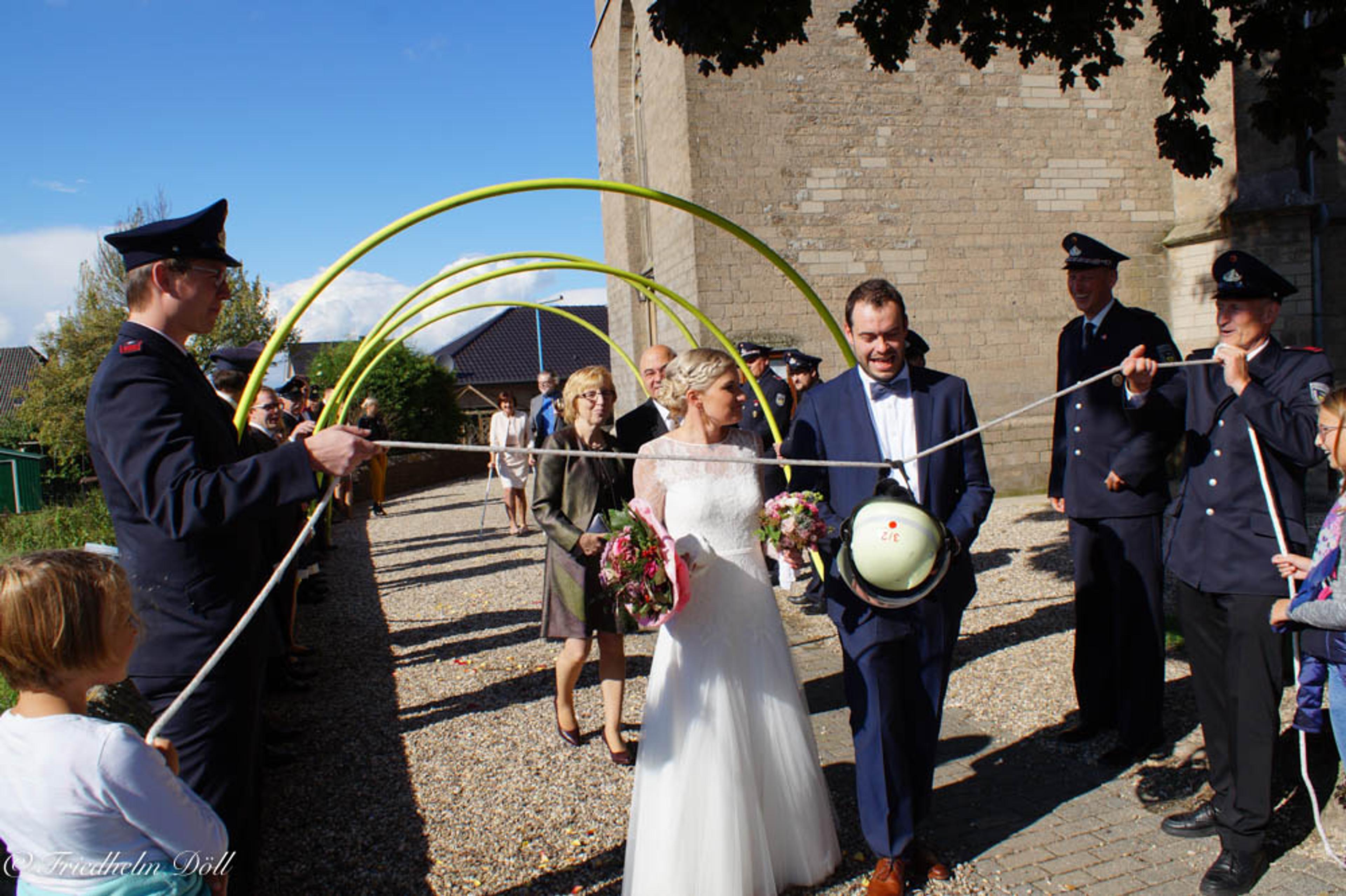 Strahlender Sonnenschein und ein strahlendes Brautpaar. Am Freitag heiratete Niklas Ortmann aus Einheit Hasselt seine Sandra. Die Hasselter Kameradschaft hatte sich für das Liebespaar etwas Besonderes einfallen lassen.