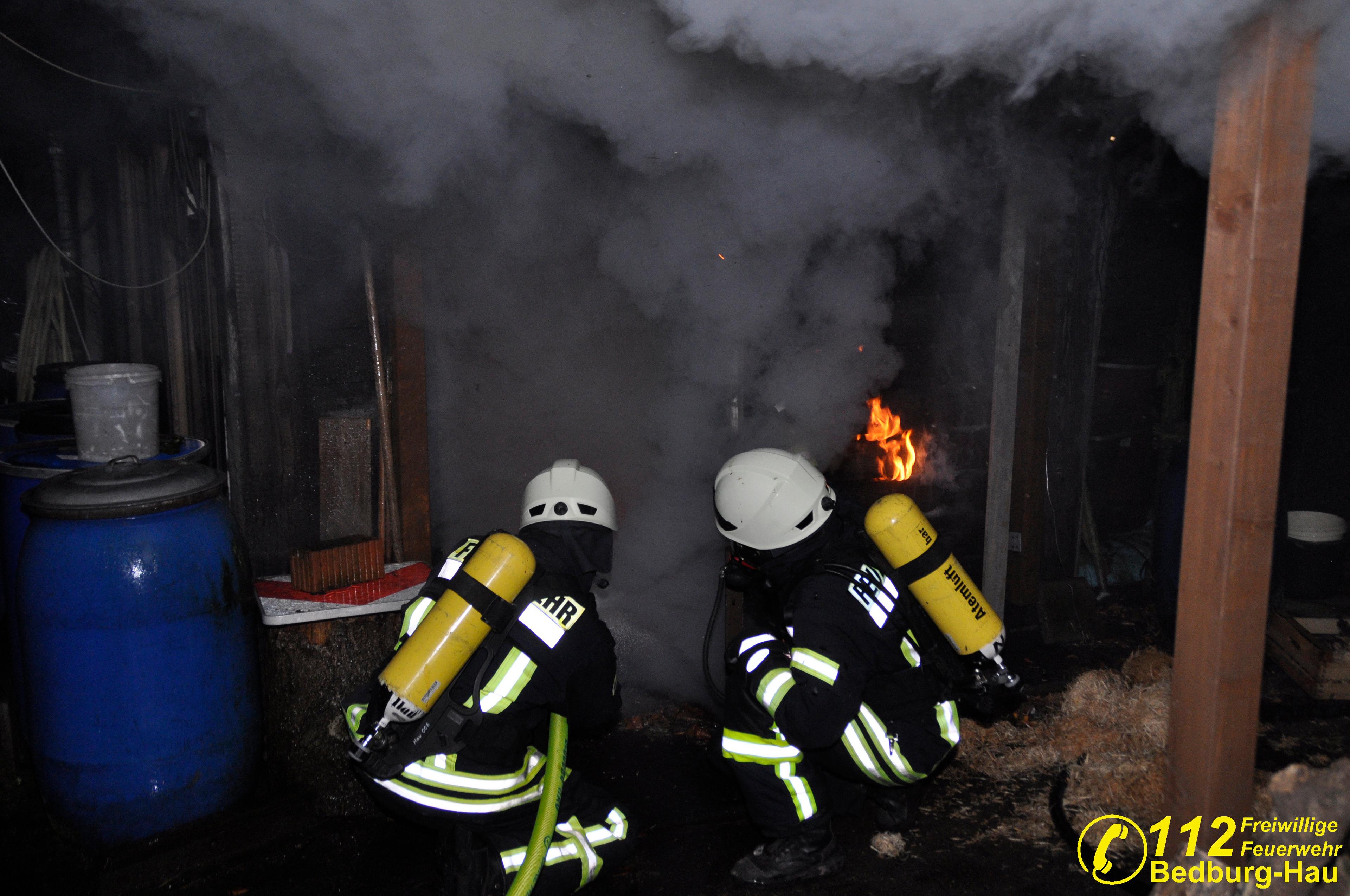 Vermutlich aufgrund eines technischen Defekts kam es am Silvesterabend gegen 22:20 Uhr zu einem Brand eines Hühnerstalls auf dem Fahnenkamp in Hau. Die Besitzer wurden durch die starke Rauchentwicklung aufmerksam und alarmierten die Feuerwehr. Sie befürchteten ein Übergreifen der Flammen auf eine angrenzende Garage.