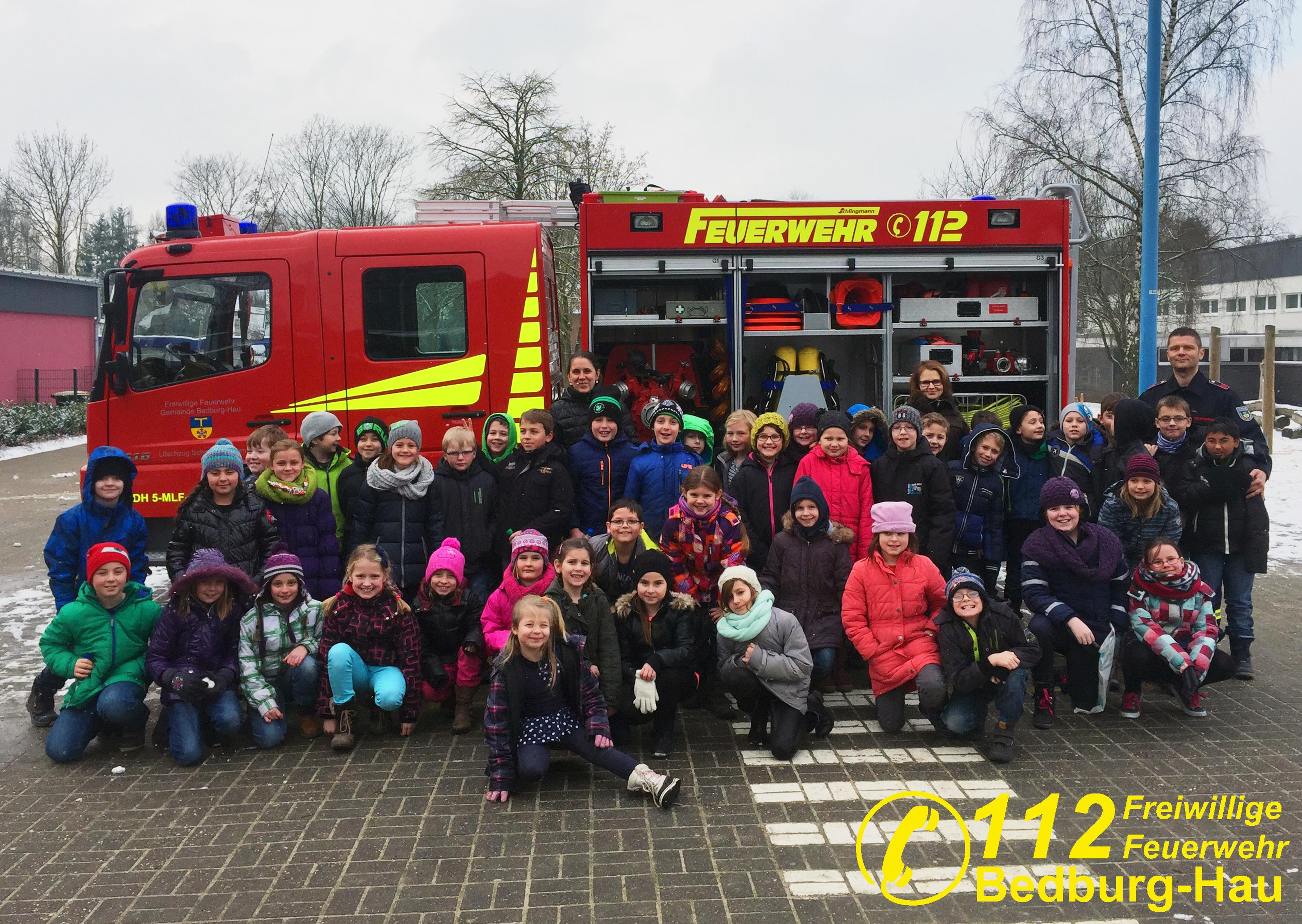 Brandschutzerziehung ist ein wichtiger Teil der Aufgaben der Freiwilligen Feuerwehr Bedburg-Hau. Sie ist heutzutage Bestandteil in Schulen und Kindergärten. Jetzt war es wieder in Schneppenbaum so weit. Der Brandinspektor Christoph Howald und der Hauptbrandmeister Andreas Howald besuchten einen Tage lang für je 4 Unterrichtstunden die beiden 3. Klassen der St. Markus Grundschule.