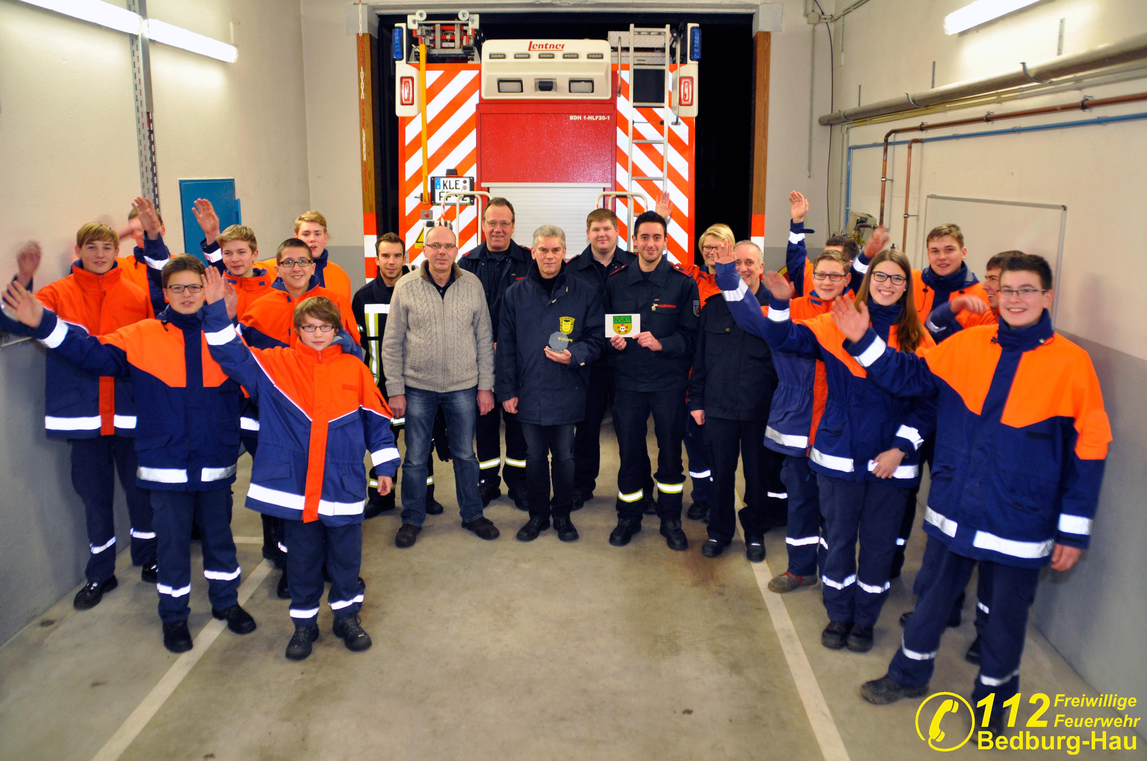 Überraschender Besuch beim Dienstabend der Jugendfeuerwehr heute in Hasselt. Der BTK-Präsident, Wolfgang Heimings, und der Schatzmeister, Heinz-Bernd Witzke, statteten dem Nachwuchs der Freiwilligen Feuerwehr Bedburg-Hau einen Besuch ab. Sie hatten eine kleine Überraschung im Gepäck. Dem Betreuerteam um Thomas Burke und Christian Flücken überreichten die Karnevalisten einen Umschlag mit einer Spende für die Gruppenkasse.