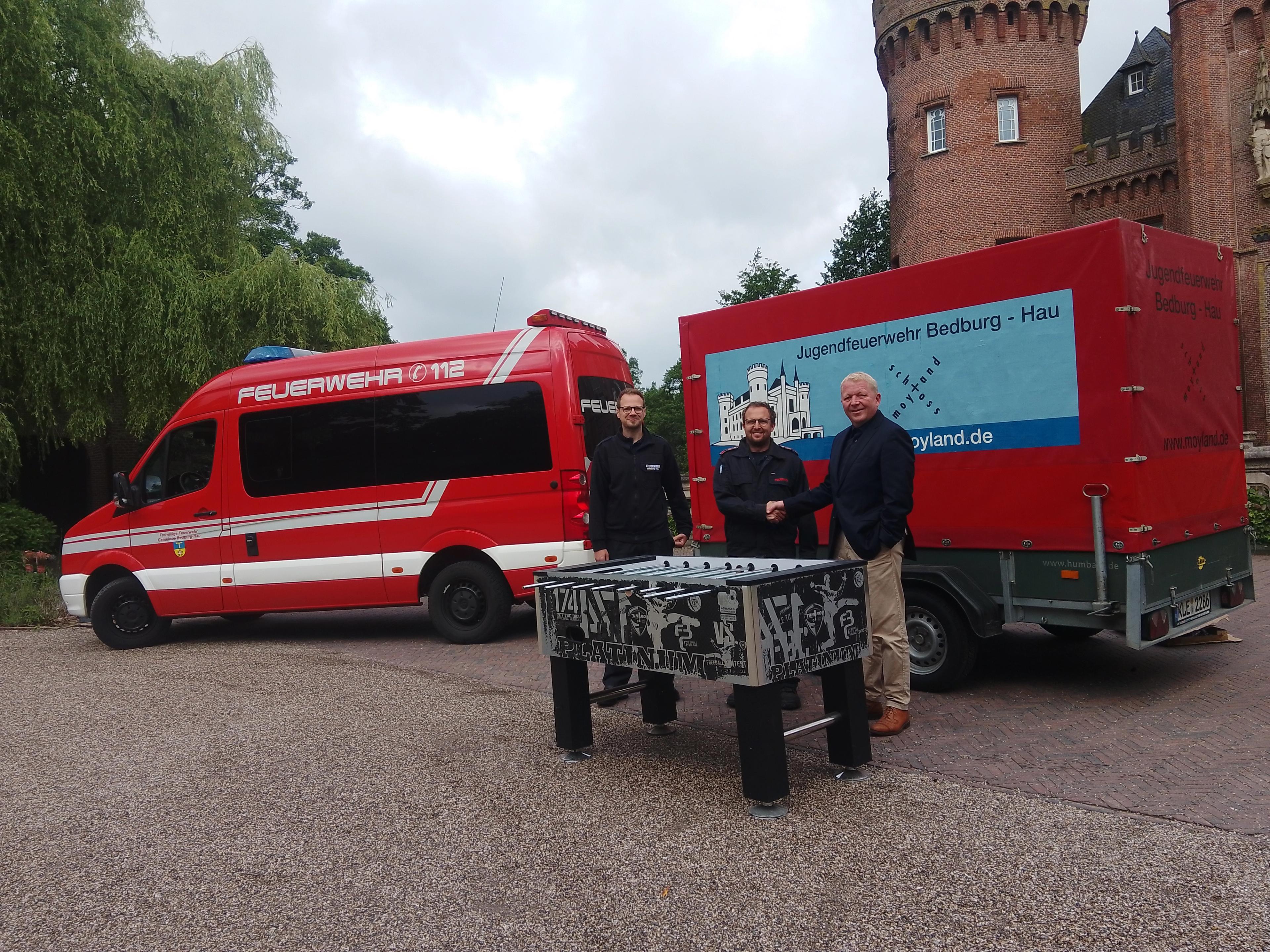 Stiftung Schloss Moyland schenkt Jugendfeuerwehr Bedburg-Hau Tischkicker zur Förderung der Kameradschaft